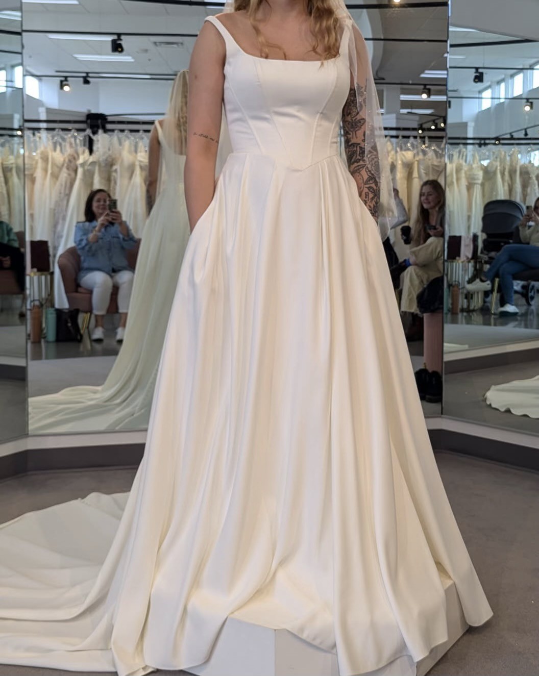 *This dress is being sold on behalf of a bride who is no longer needing it. There is NOTHING wrong with this. It was picked up from the bridal shop less than 1 week ago and remains in a non-smoking home contained in its dress bag.