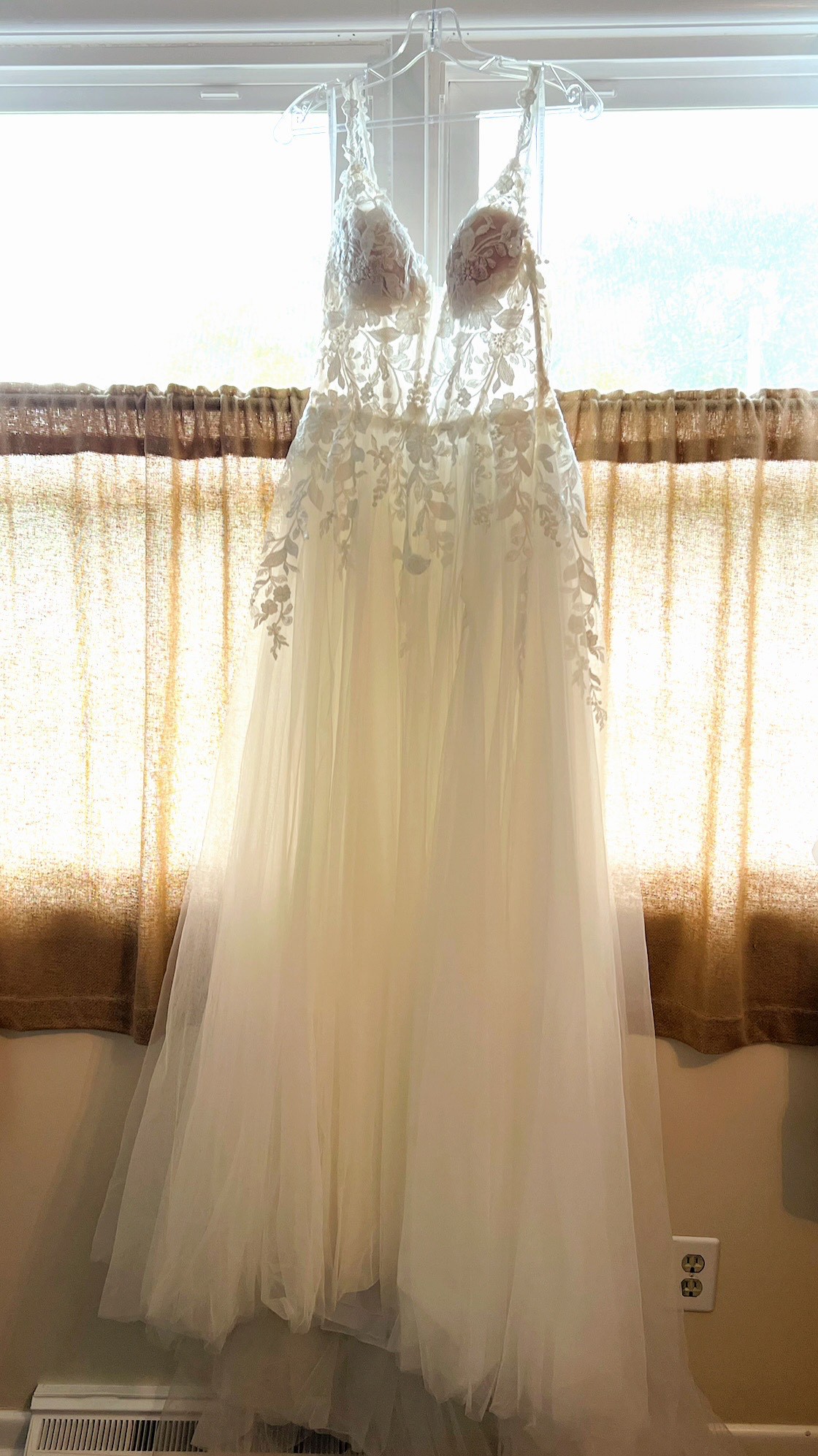 Gorgeous, never worn, only out of bag once dress. I love this dress and so will you! Lightweight and comfortable. High quality materials. Smoke free/pet free home. I had to switch dresses only because I found out I have an autoimmune disease that worsens with sun exposure and venue was outdoors.