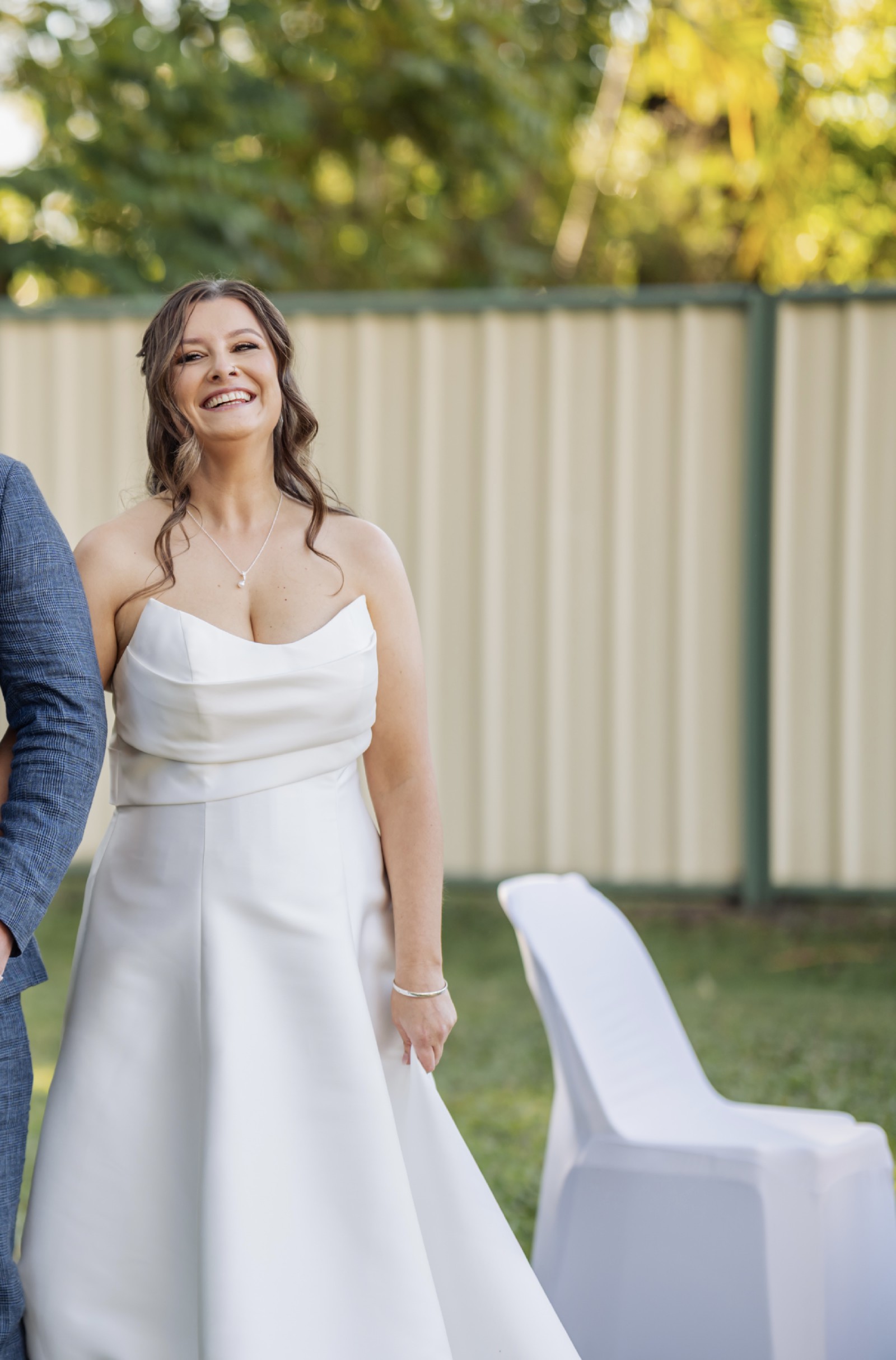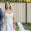 - Hem shortened (as shown in pictures), bust cups added, taken in slightly at bust, adjustable hooks/straps added to inside of dress for flexible sizing