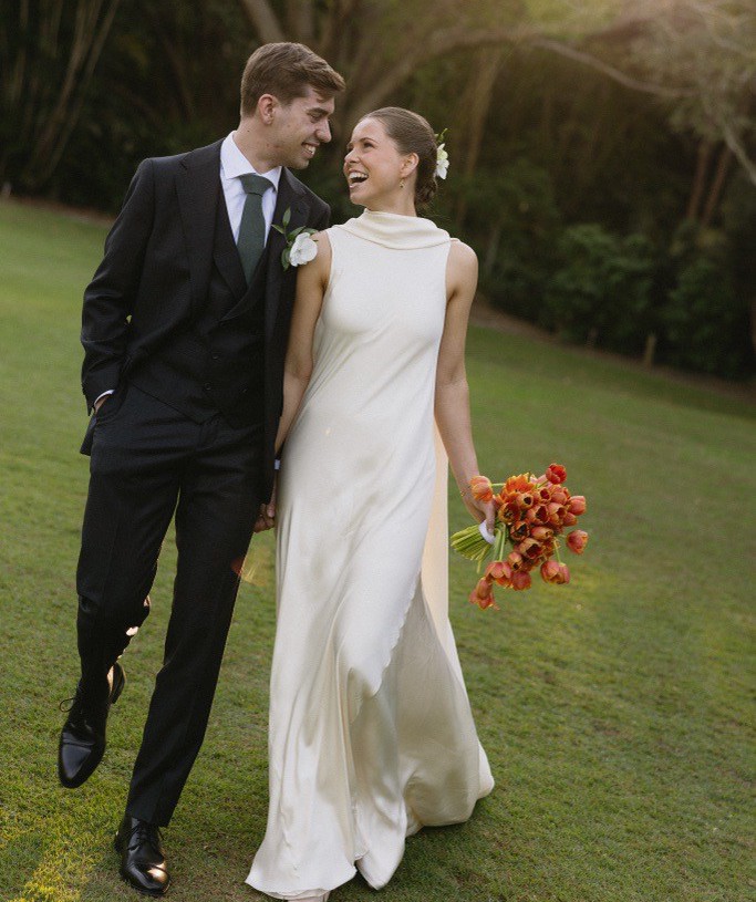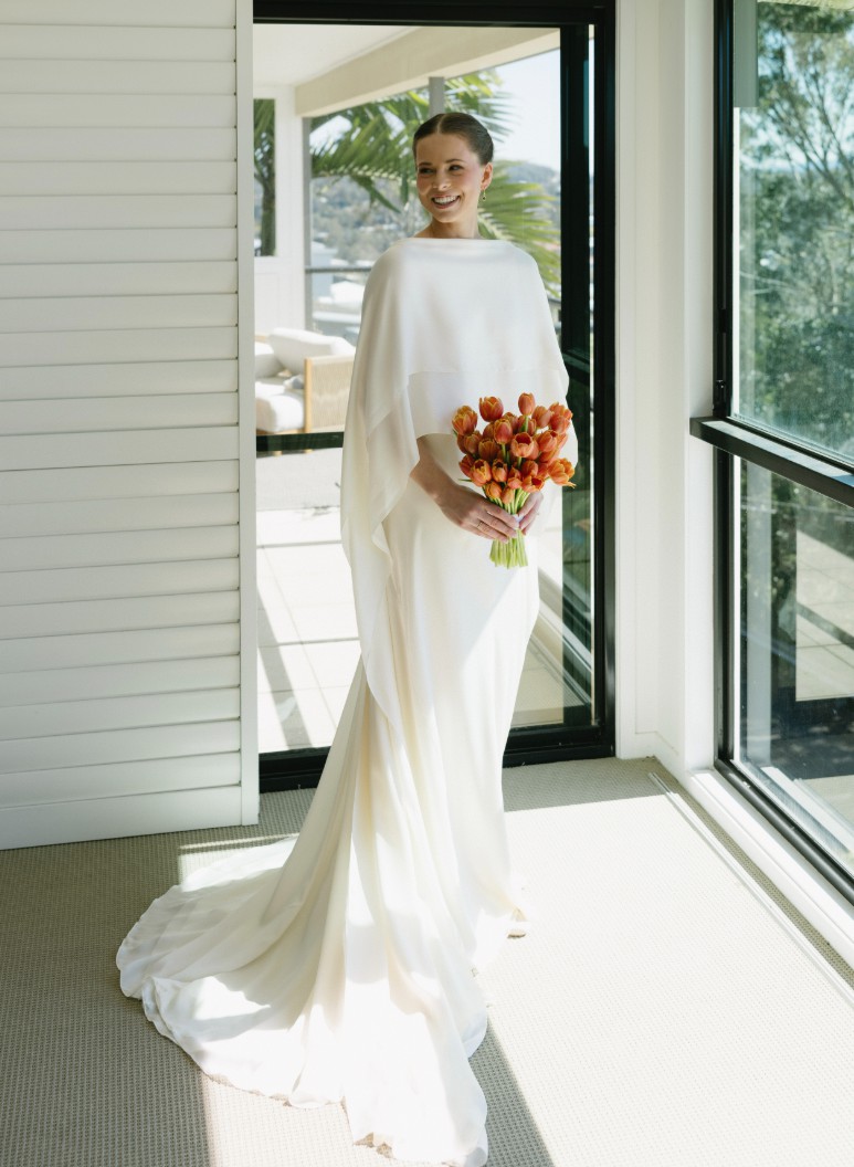 This stunning Cortana wedding dress embodies elegance and grace, imported to Melbourne from Spain. The sheath silhouette hugs your figure beautifully, accentuating your curves due to being cut on the bias. I wanted to look amazing from every photography angle, without tensing muscles, and this dress was perfect.