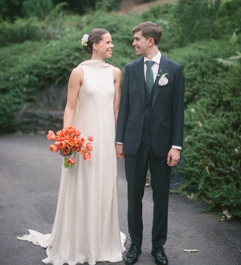 This floor-length dress drapes flawlessly. I found the gown to be extremely versatile in terms of weather and wedding style, and in fact, bought the dress and styled the wedding around it. It is not in line with any current trends. The off-white colour made my skin look amazing.