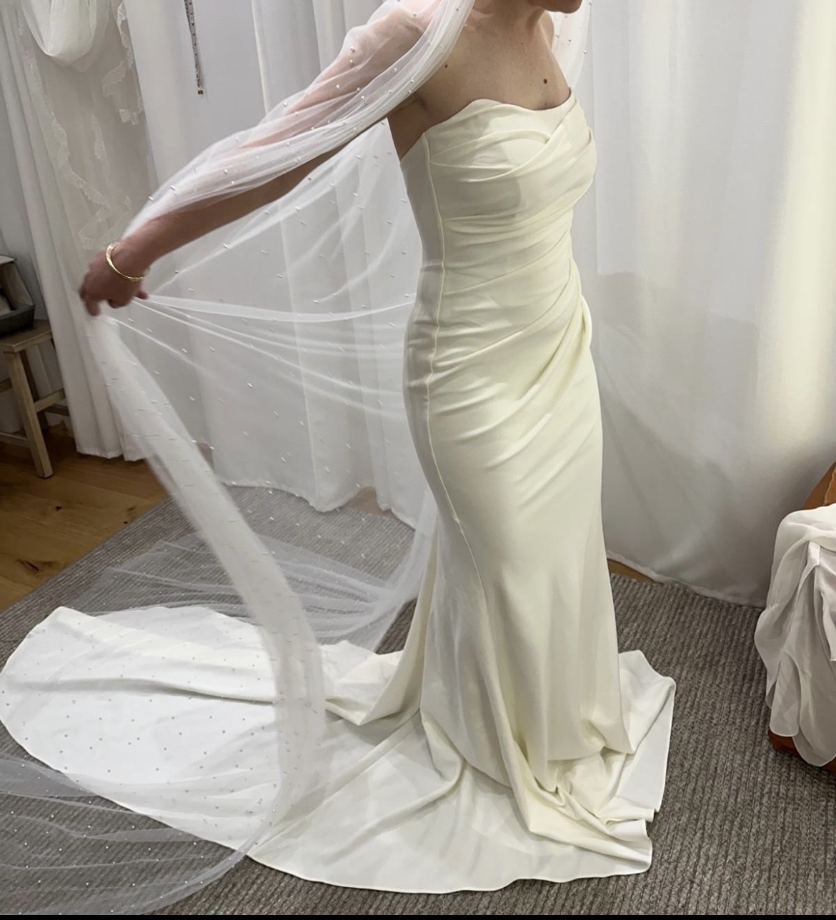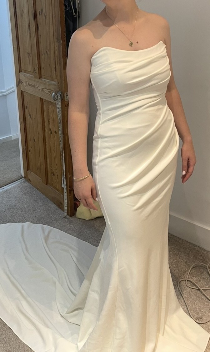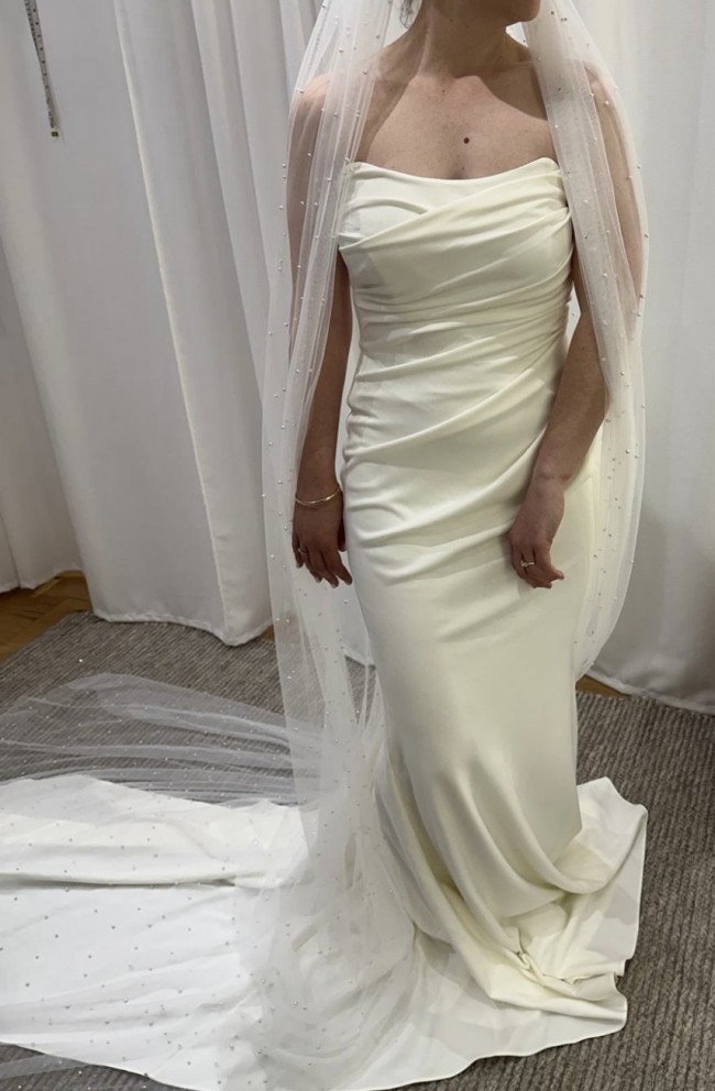 The perfect strapless crepe wedding dress does exist. Phoebe is defined by her simplicity, and she creates the most beautiful silhouette with built-in shapewear and flexible boning, designed to flatter the waist and create a timeless bridal look.