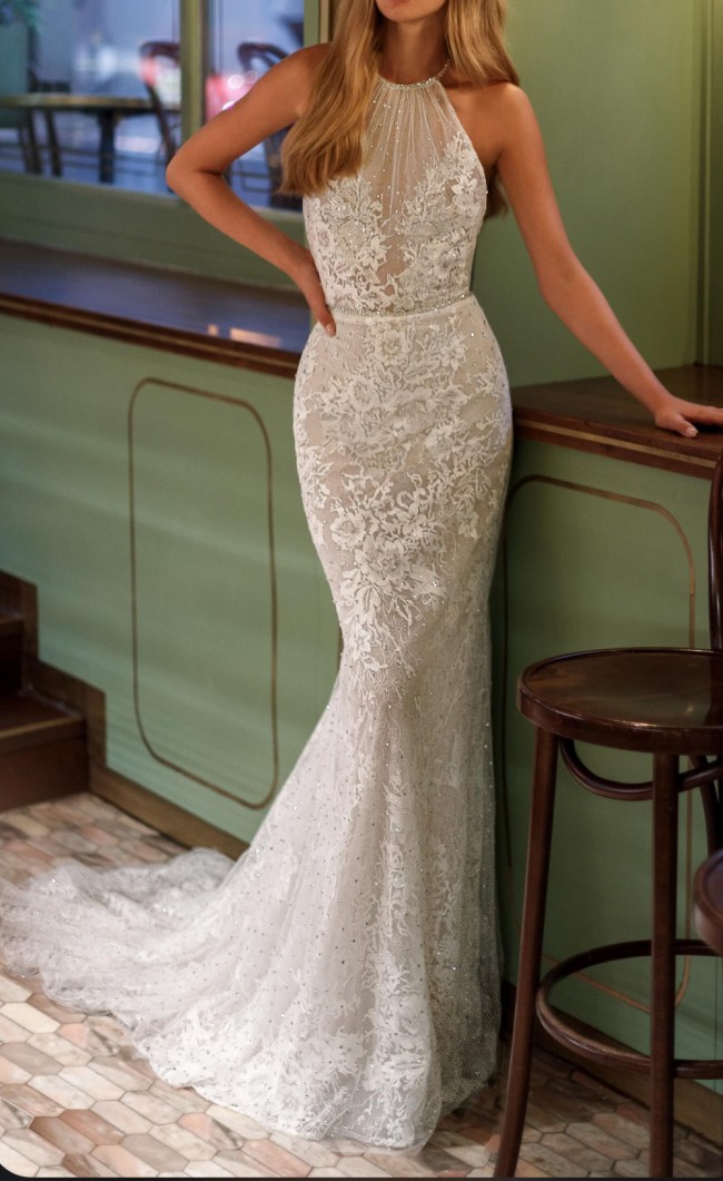 ✨ The dazzling "blink-blink" halter neckline is a true showstopper.