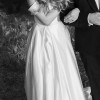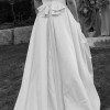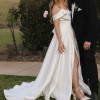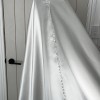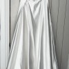 The floor-length design flows gracefully, exuding a sense of movement and sophistication. There is extra structure in the bottom of the skirt to keep the dress sitting beautifully at the floor. It has an easy to use bustle at the back, and the train looks great both up or down. I can’t forget to mention the exquisite bow that add playful elegance and the slit above the knee that brings an element of surprise and modern flair. It’s truly a dress that speaks to both classical charm and contemporary style, making it perfect for any bride looking to make a statement.