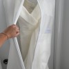 Only worn for few hours due to a small day time wedding, no dancing, no stains, excellent condition. Minimal marks on the very bottom of the train from the inside of the hem not visible when worn.