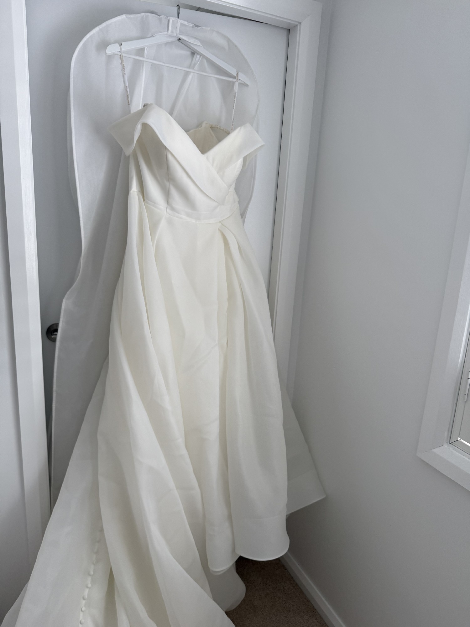 - Hem shortened, bustle added, minimal alterations in the bust to make it more snug to my body
