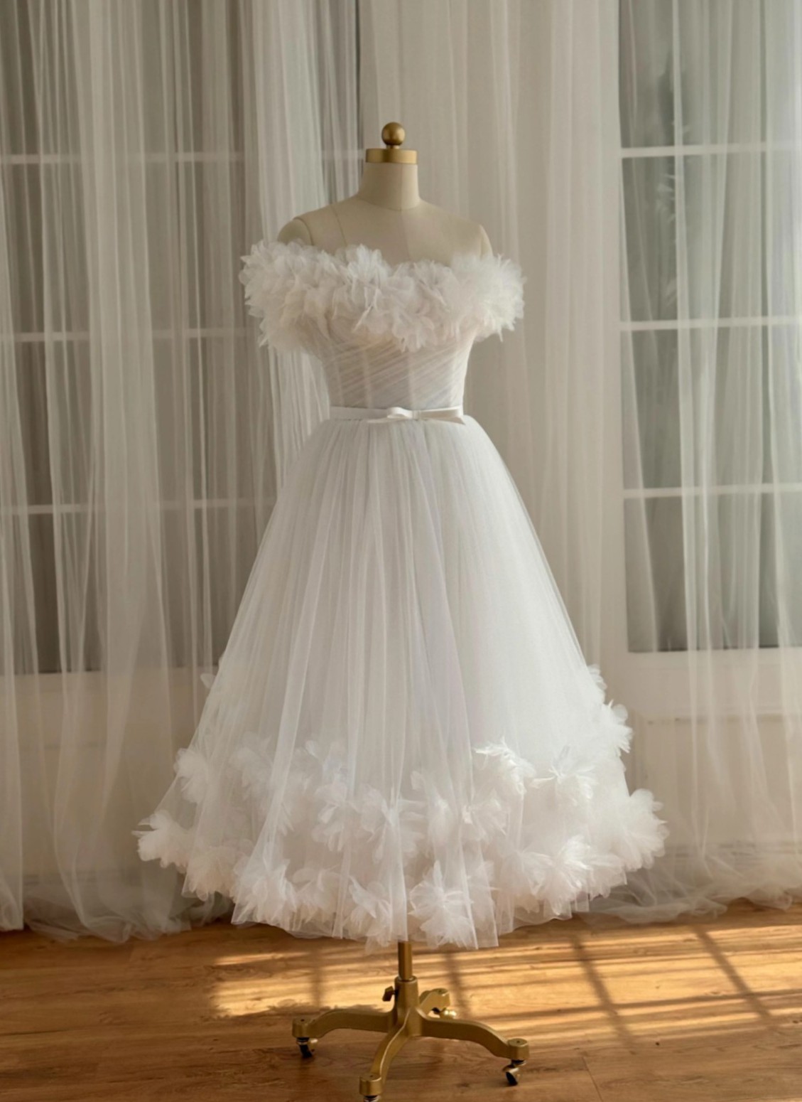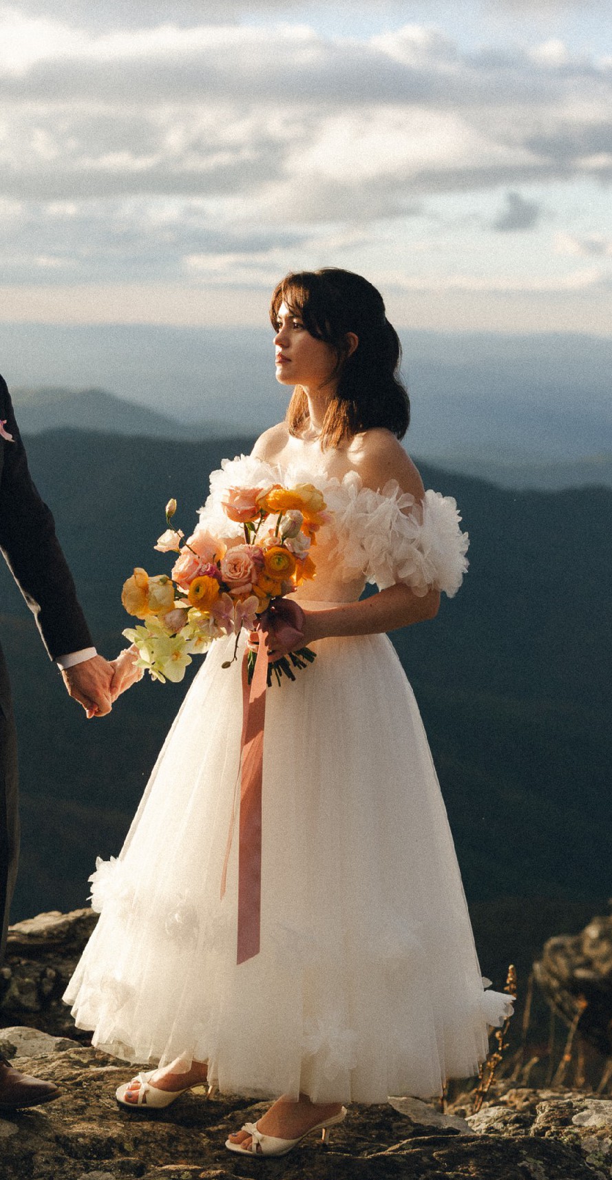The roses in the clouds midi dress by teuta matoshi was perfect for our elopement last month. There is a corset back, so no alterations were needed for me. On the model, this dress was a midi/tea length. On me it is ankle length as I am 5’2.