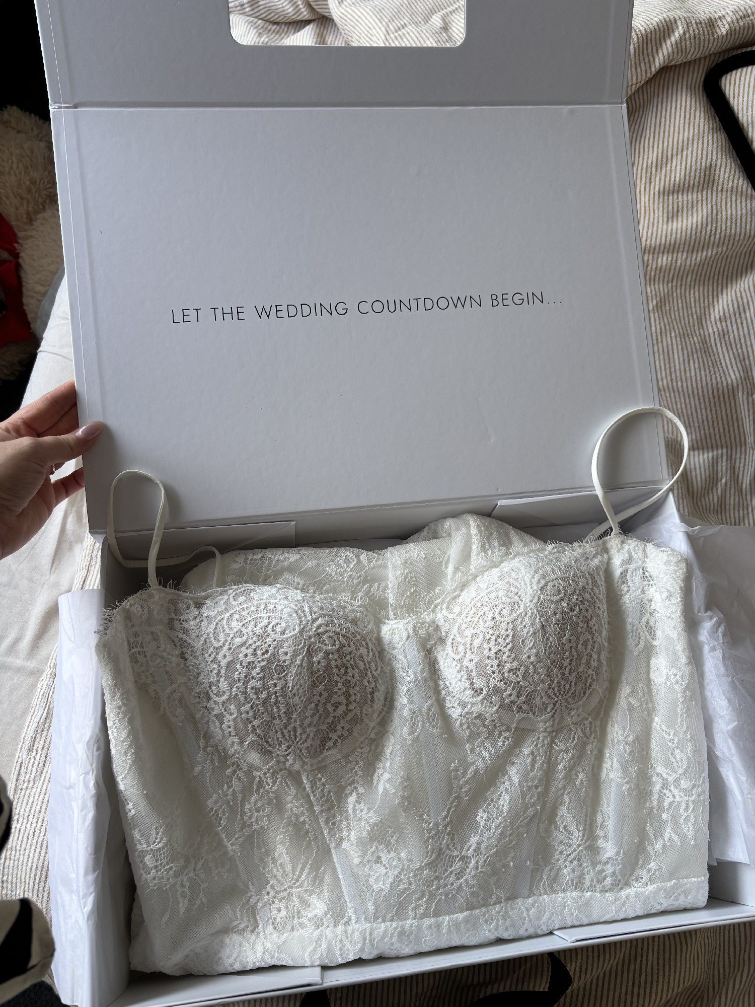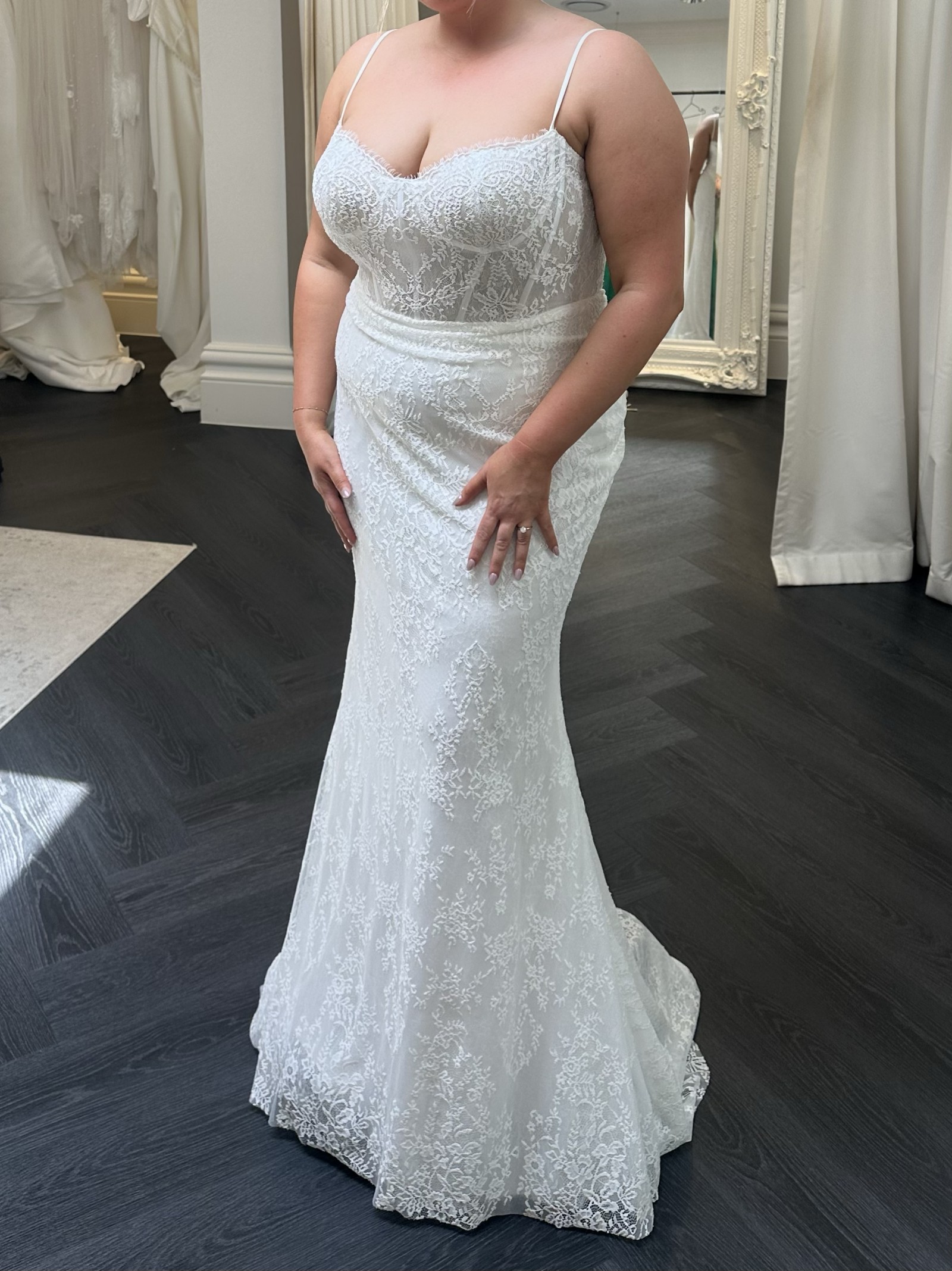 Brand new, and only been tried on in-store. Only selling as I have decided on another gown for my special day.