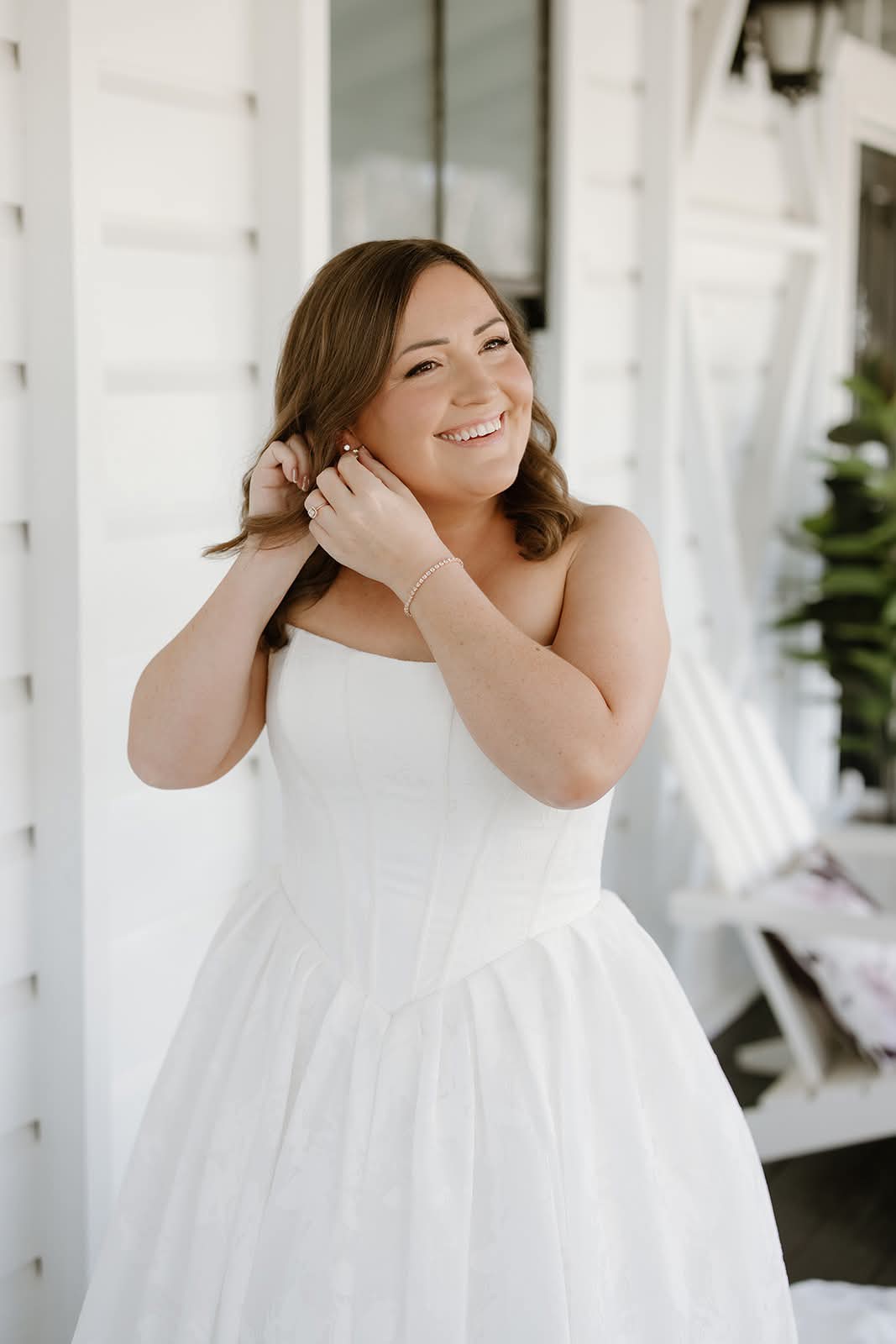 A modern princess wedding gown comes to life in Style D4158. Featuring a strapless scoop neckline bodice with vertical contouring seams, the fully-lined bodice accentuates the figure while complementing the romantic Basque waist. The back showcases a timeless lace-up detail, adding a touch of old-world charm. From the waist, a full and romantic ballgown skirt billows in a one-of-a-kind textured organza, complete with pockets and long regal train. This enchanting gown beautifully balances modern design with classic bridal elegance for an ultra-romantic ballgown wedding dress made for a fairytale wedding.