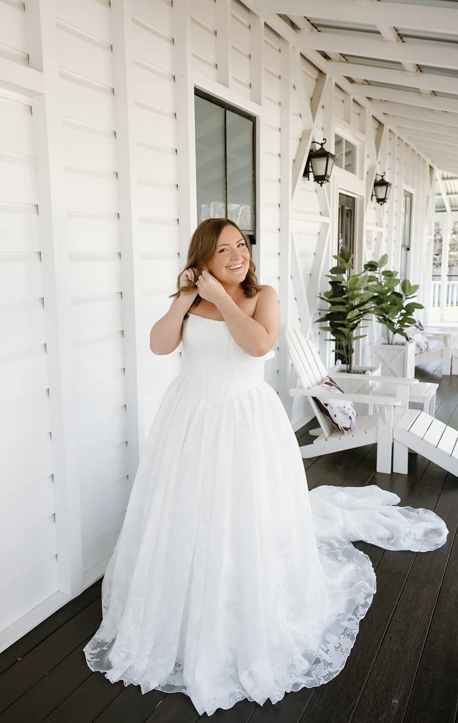 Such a gorgeous dress, that made me feel incredible on my wedding day. Bought from White Lily Couture ("Roma" in the jacquard print, lace back option) and worn for my September wedding. Has been dry-cleaned and is boxed, but I also have the original garment bag and hanger.
