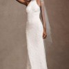 Featuring an elegant halter neckline with scalloped details, the Belle Gown is a classic beauty ideal for your big day. Its silhouette, fitted to perfection, waltzes elegantly with all-over lace embellishments, creating a symphony of patterns that are equal parts intricate and captivating.