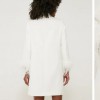Excellent casual bridal dress or reception dress - so fun! I got so many compliments on it! Has pockets as well which is perfect. I only wore once as a reception dress for a few hours. It's been professionally cleaned and it does not have any damage or stains on it. It also hasn't been altered. The dress has a mod vibe to it and it was so fun to wear and looks great in the photos (especially the feather sleeves.)
