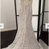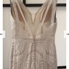 V-neck with an illusion inset, thin sash waist with glass beads, pearls and sequins.