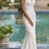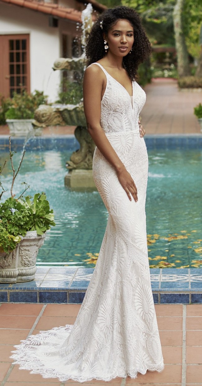 A beautiful fit and flare style wedding dress in ivory with a blush/latte lining.