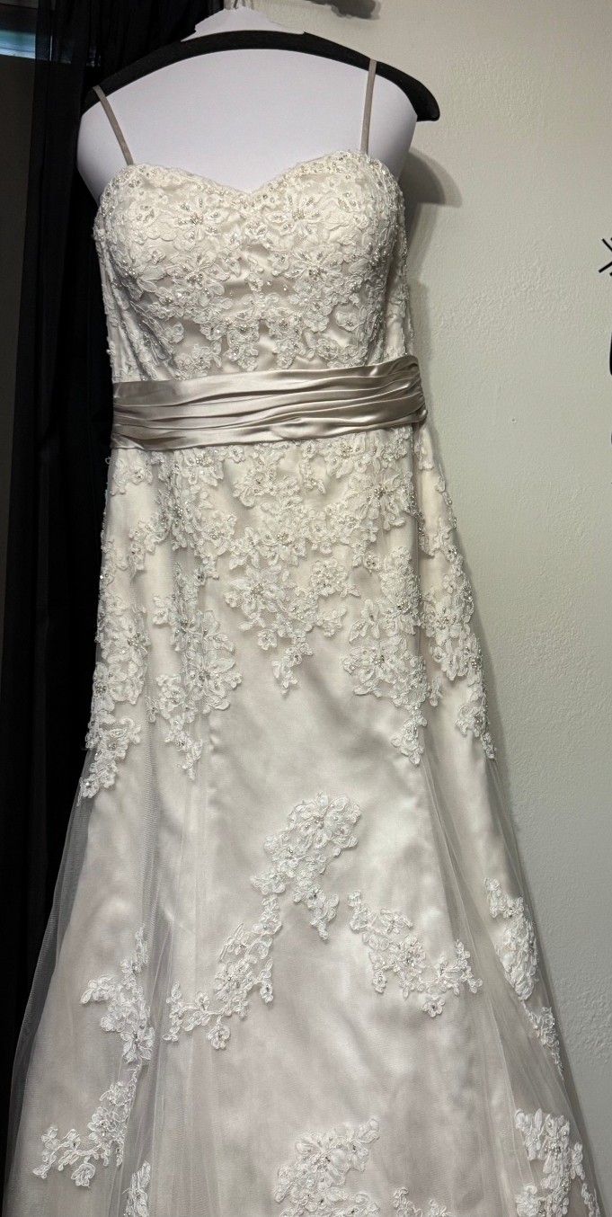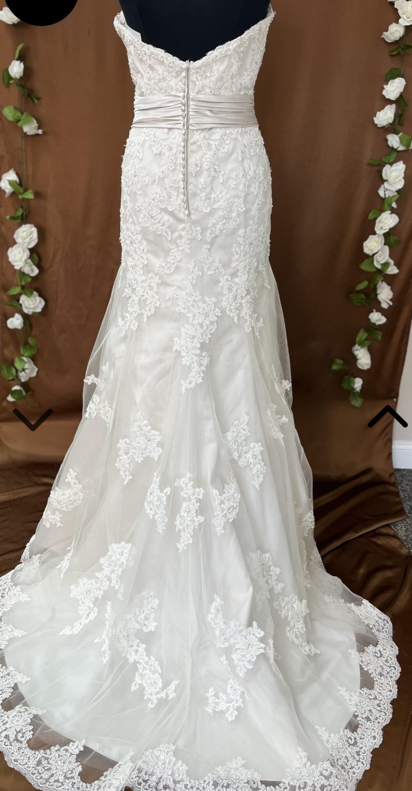 Now, I’m ready to pass this exquisite gown on to another bride who will create her own magical memories in it. It has been professionally cleaned and preserved, awaiting its next chapter in love. If you’re looking for a dress that embodies elegance and charm, this is the one that will surely make your wedding day unforgettable.