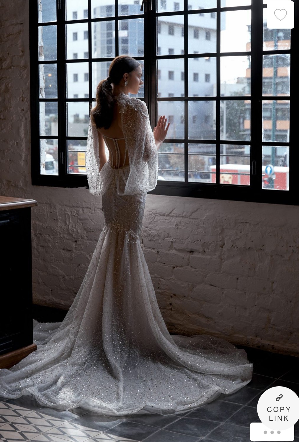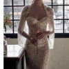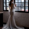 A sweetheart neckline transitions into an elegant illusion back with covered buttons, leading into a flowing chapel-length train — perfect for a grand aisle moment. The overall look is refined, feminine, and unforgettable — ideal for brides seeking both glamour and sophistication.