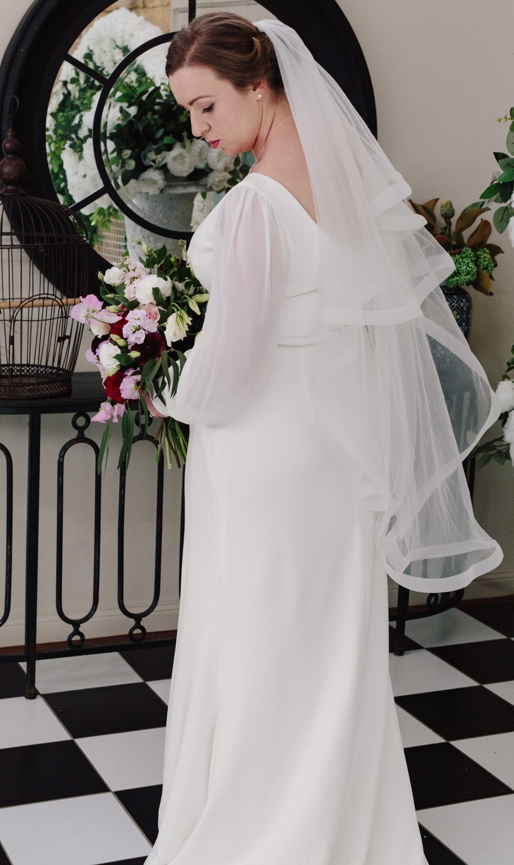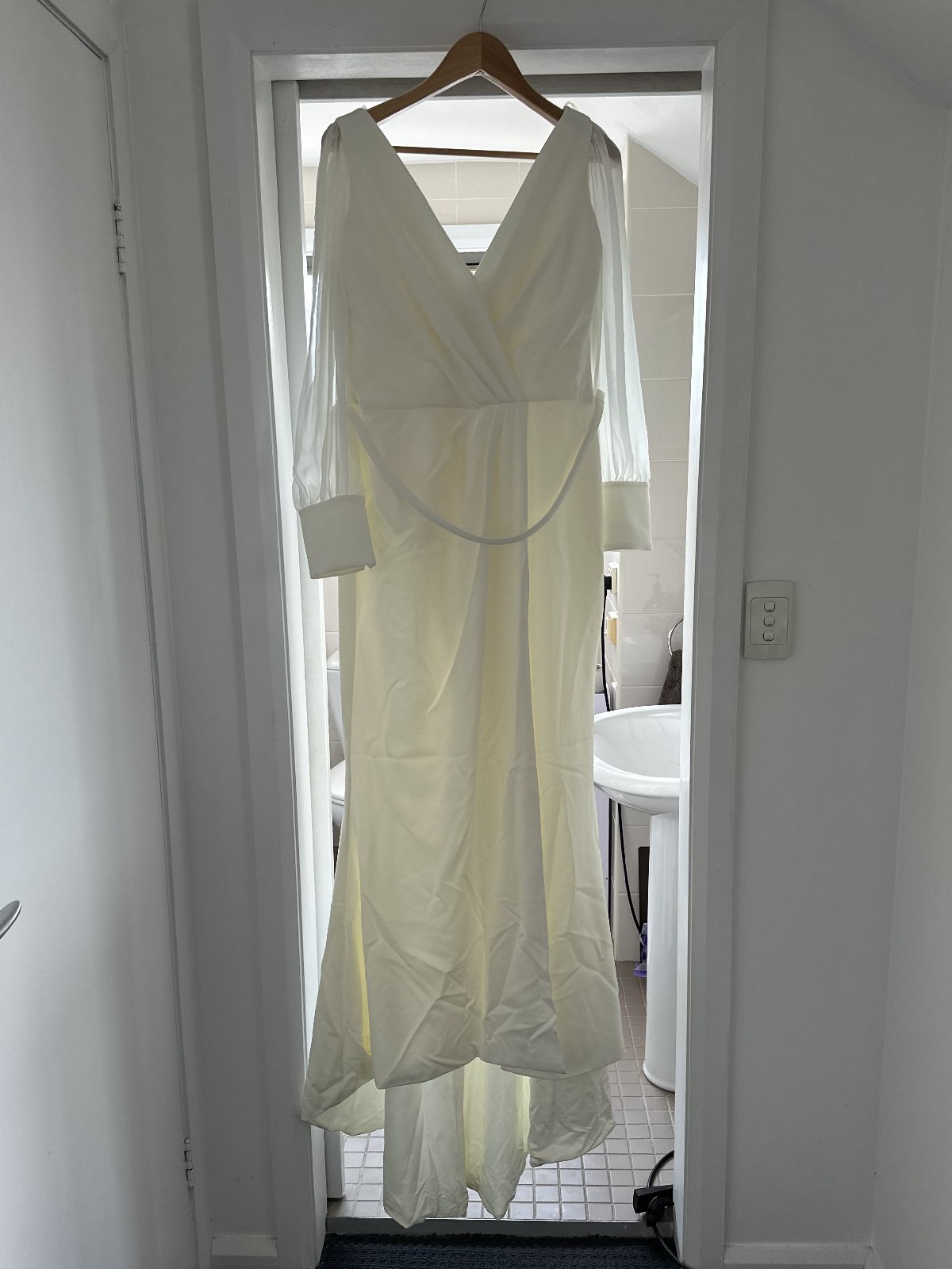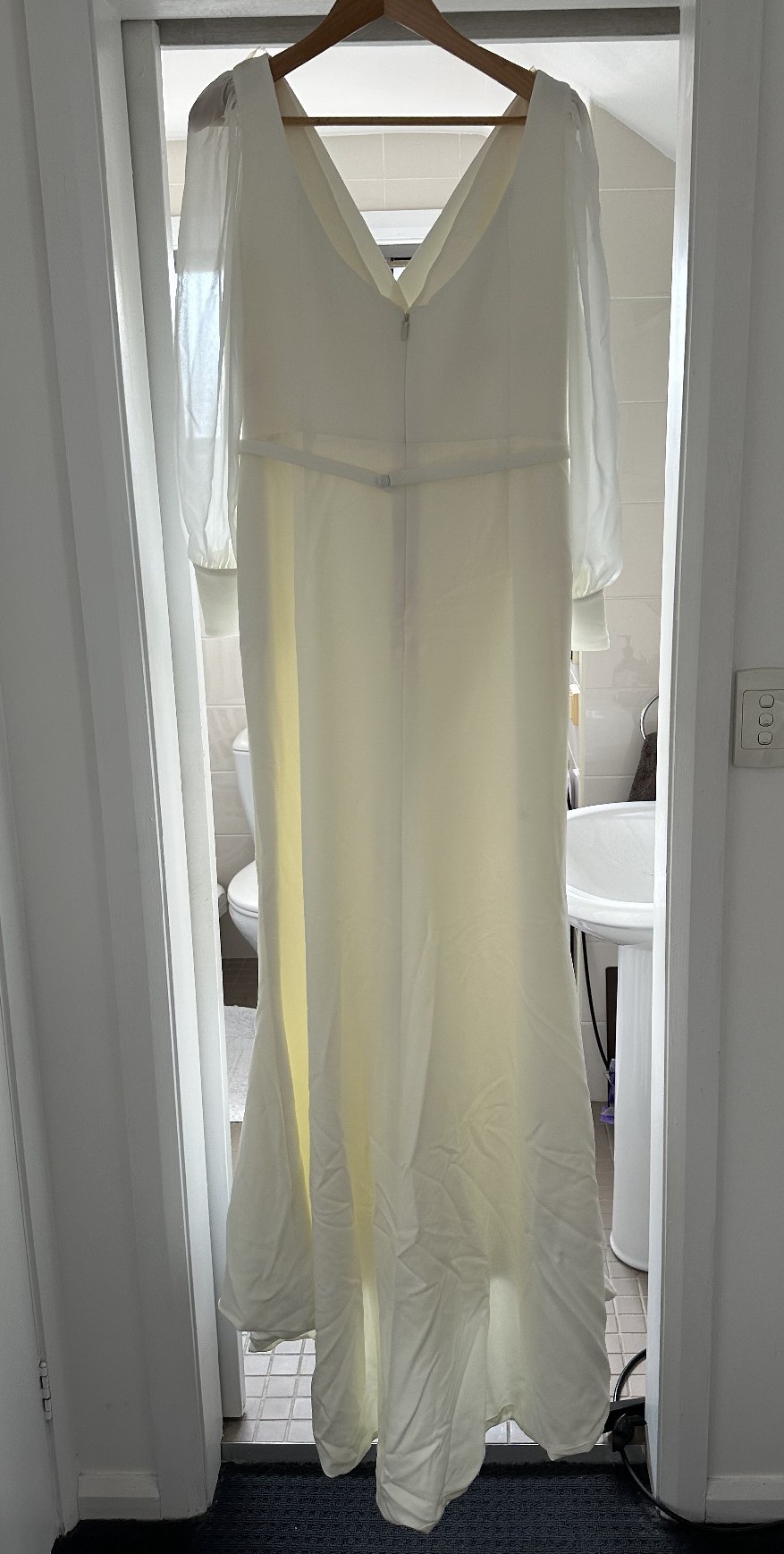 My beautiful Karen Willis Holmes Curve Nikki wedding dress. Comes with the KWH Slip Spantastic & veil. I have the extra buttons also. This dress was so comfortable on my wedding day. I had press stud loops stitched into shoulders so that it wouldn’t slip of my shoulders during the day.
