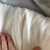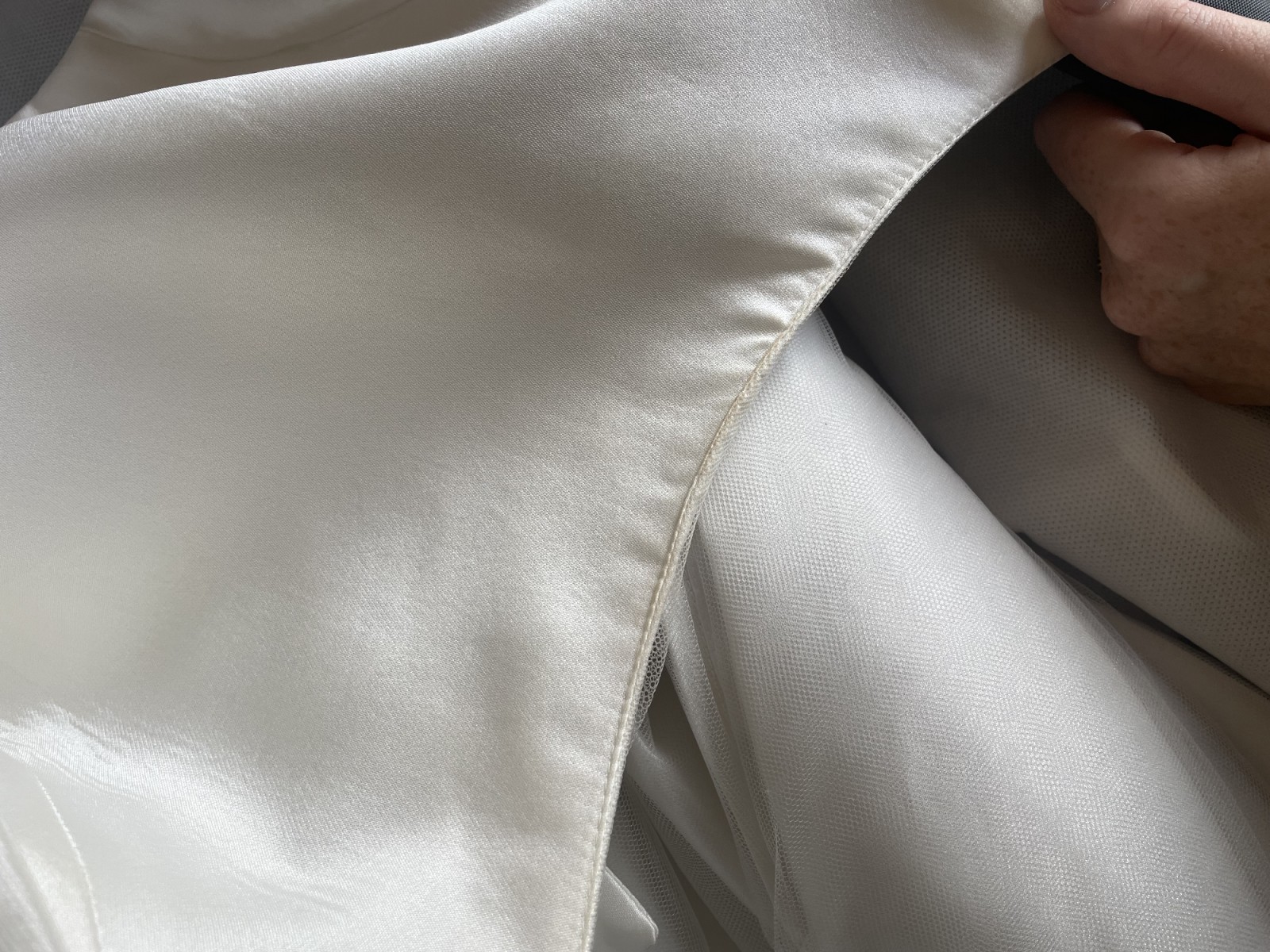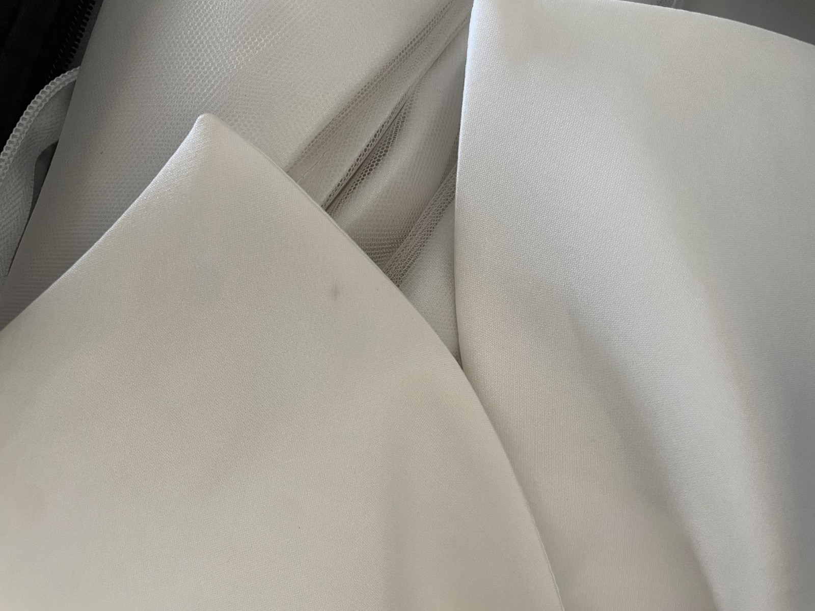 It’s clearly been tried on by a few other people as there are some tiny imperfections. The main one is what looks like makeup on the inside of the dress. It is not noticeable whatsoever from the outside. You can see it in the photo of the neckline (5th photo). Another imperfection included a tiny mark on the bow, which they told me could be cleaned off (8th photo). The last imperfection is a tint fray at the zip line, really unnoticeable but I’ve put this in photo 6.