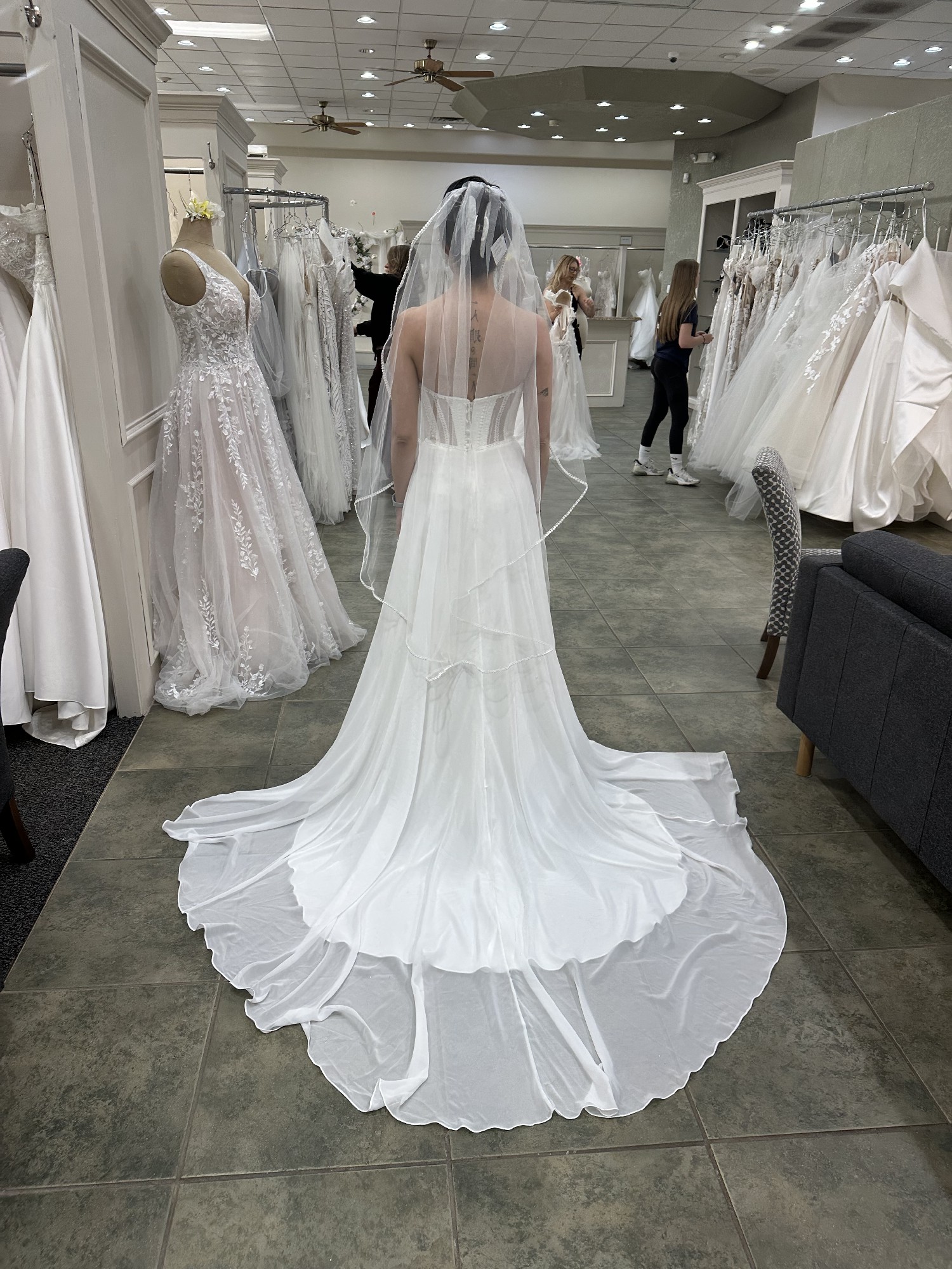 - small stain on very end of train which could be easily hemmed off