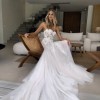 lace reflects beautifully the light and gives the wedding dress shine. It is a Romantic, fairy tail dress. This dress was made in Poland with hand sewn beading so the detail is breath taking! You will glow in this dress and look like an absolute princess bride.