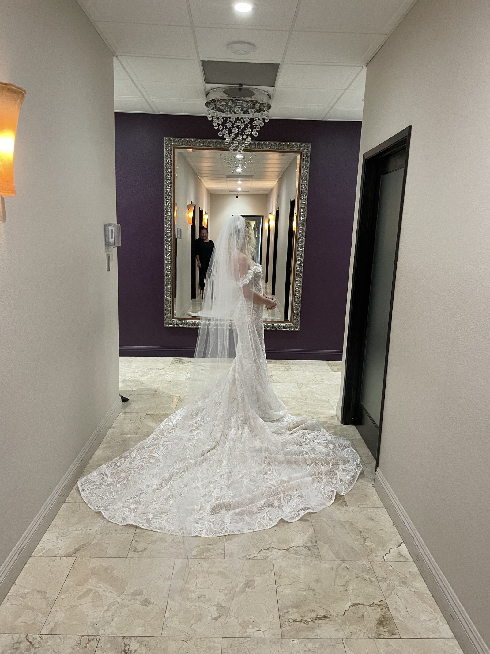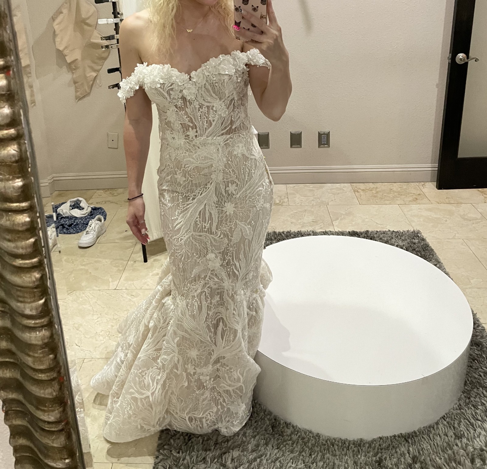 Elegant and feminine, Odette features a sweetheart neckline with embroidered 3D french embroidered floral lace with