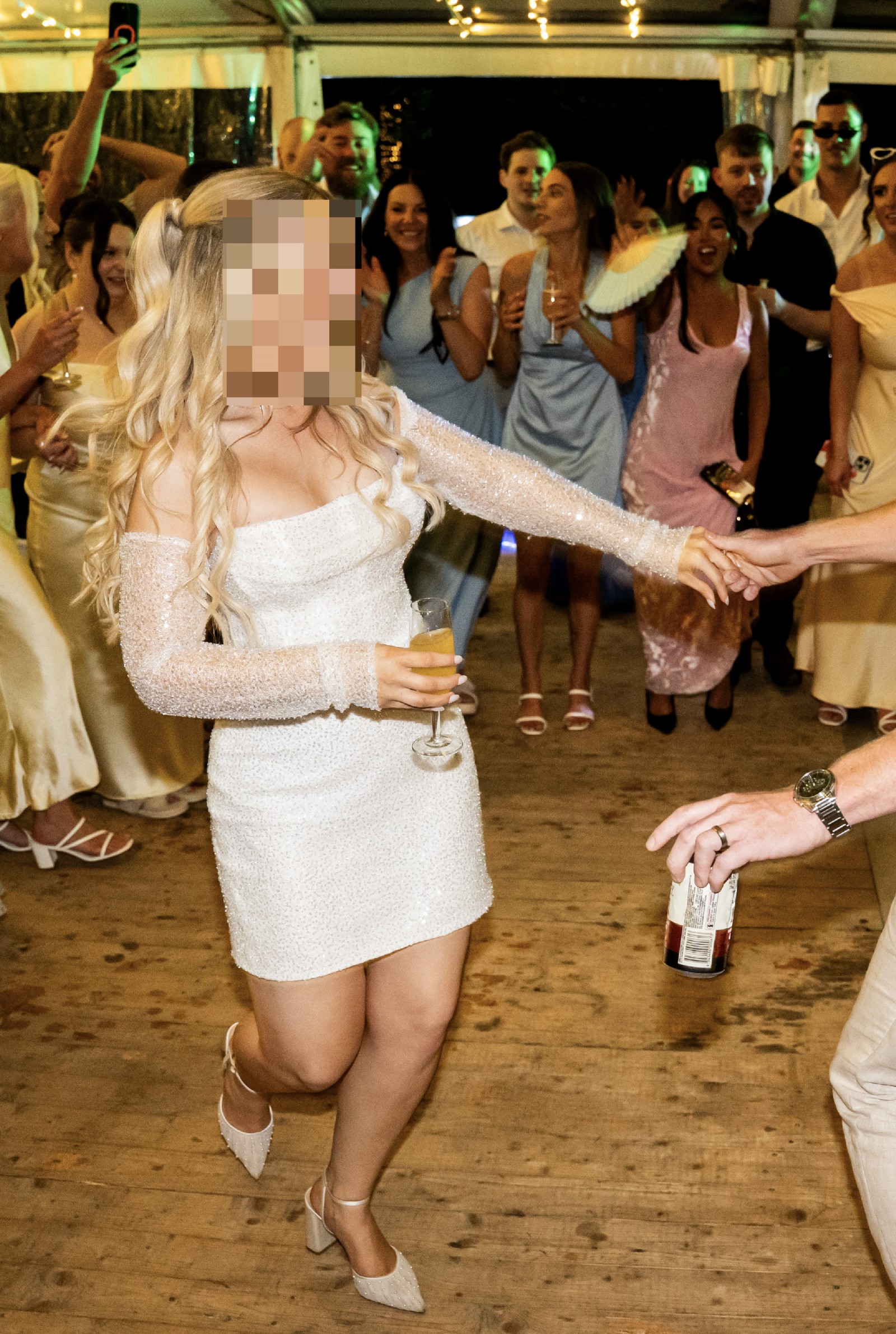 Used as reception dress for wedding, worn for a couple of hours, stunning dress!