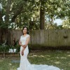 It's a fit and flare number but incredibly comfortable to wear. I wore this all day both for my ceremony (outdoor) and reception. Stunning Chantilly lace and botanical motifs feature throughout the entire gown,