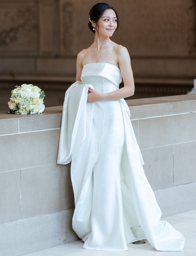 GUYS! I am so in love with this dress 🥹❤️ I wore it first very briefly for our SF City Hall wedding last year, and then again this year for our formal wedding in Japan!! I couldn't have asked for a more perfect dress. I got it brand new from a bridal boutique, made to order, from Anjolique Bridal in NC.