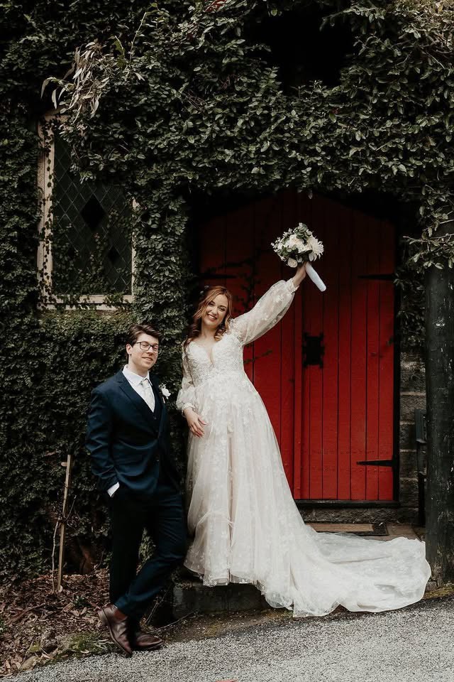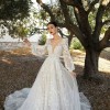 This stunning Demetrios 200160 gown combines timeless romance with modern elegance. Featuring a plunging V-neckline, low back, and long bishop sleeves, it offers a perfect balance of sophistication and allure. The dress is crafted from beaded lace over soft sparkle tulle, creating a subtle shimmer that catches the light beautifully as you move.