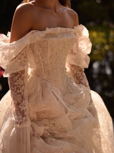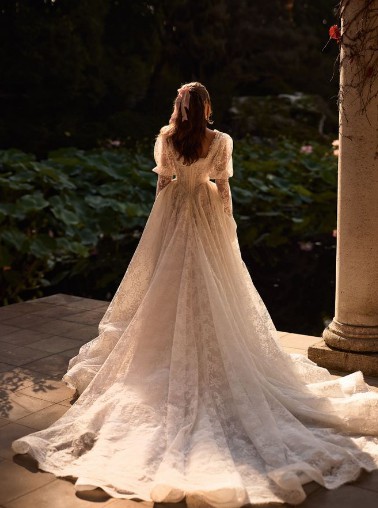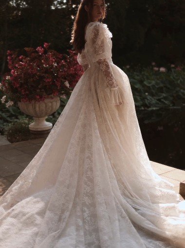 This enchanting Melrose wedding dress from Milla Nova was a dream come true on my special day. As I slipped into this stunning ballgown, I immediately felt like a princess. The exquisite lace fabric hugs in all the right places, while the mid back and long sleeves add a touch of elegance and sophistication.
