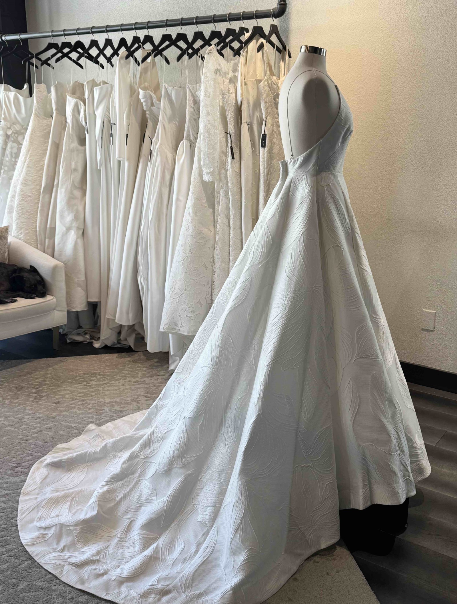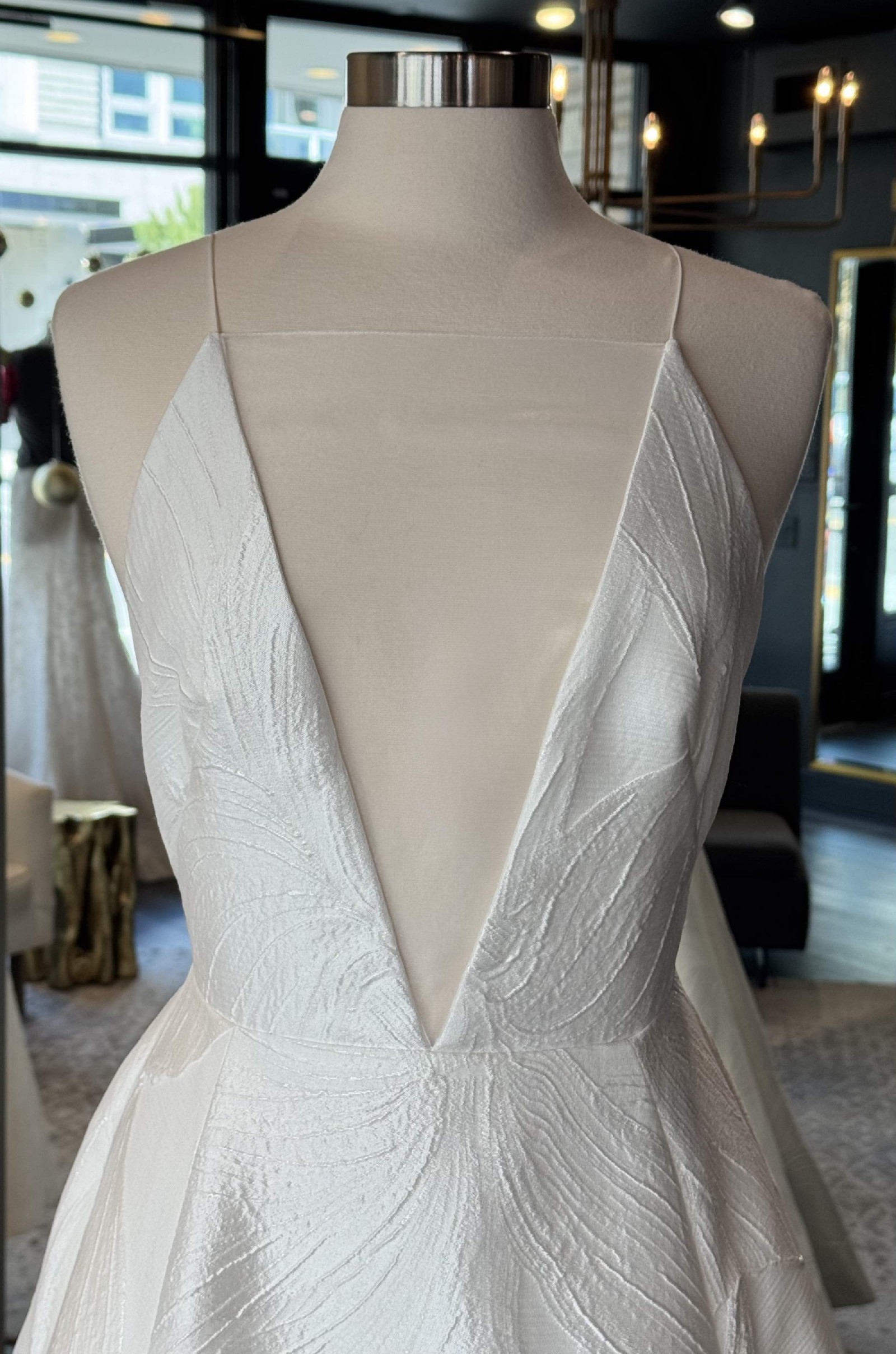 - Gown was a sample in a luxury bridal boutique and was well cared for