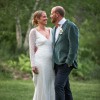 I had this altered for my 5' 7" height and I wore low heels. Includes bustle and has been professionally cleaned.