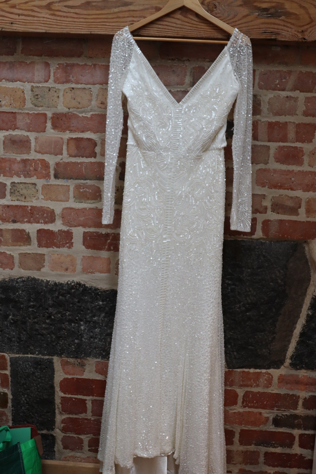 Karen Willis Holmes "Celine" wedding dress in good condition. I absolutely loved this dress with its gorgeous sequins and beading.