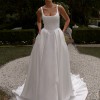 Designed for both style and comfort, Cicely features a modern square neckline with illusion tulle centre front cutout and wide-set straps that offer extra support and the bodice is crafted with built-in bra cups, boning, and soft fusing to create impeccable construction, ensuring you feel confident and secure as you walk down the aisle.
