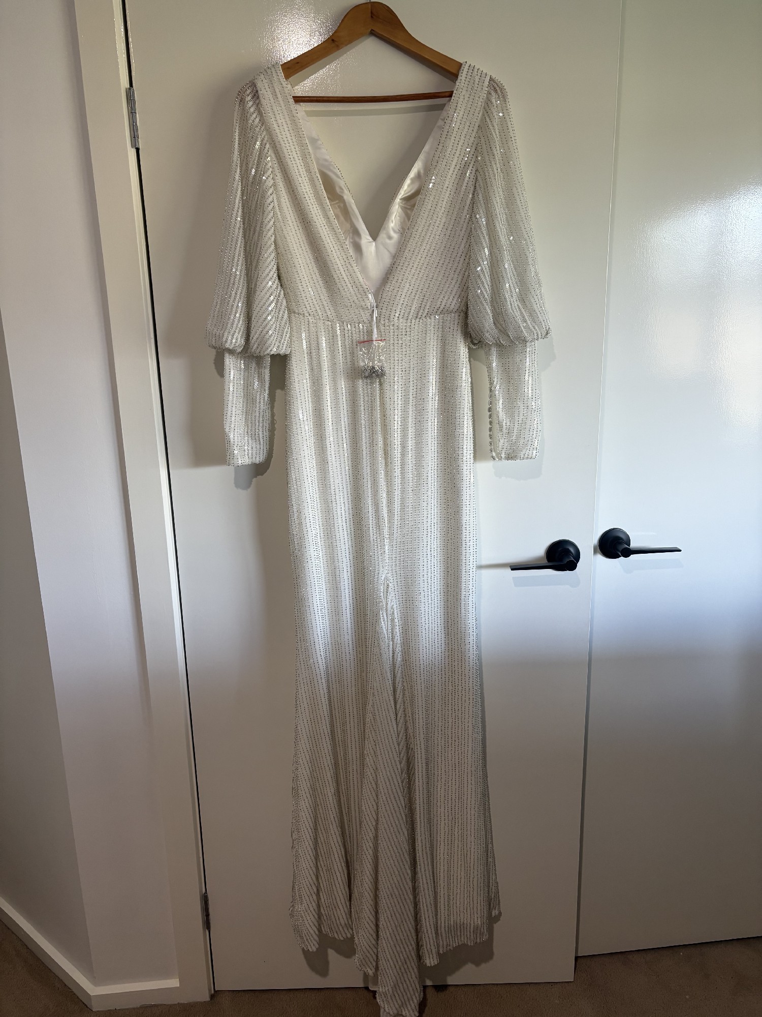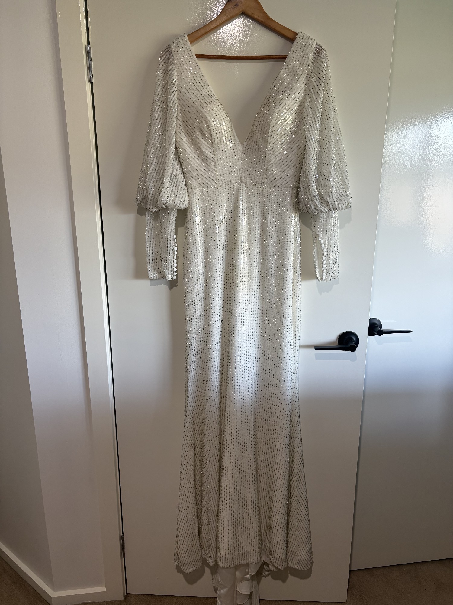 Bought brand new in sample sale for wedding but never worn as went with another wedding dress Will fit a small size 10 but more comfortably a aus size 8 Dress never been altered
