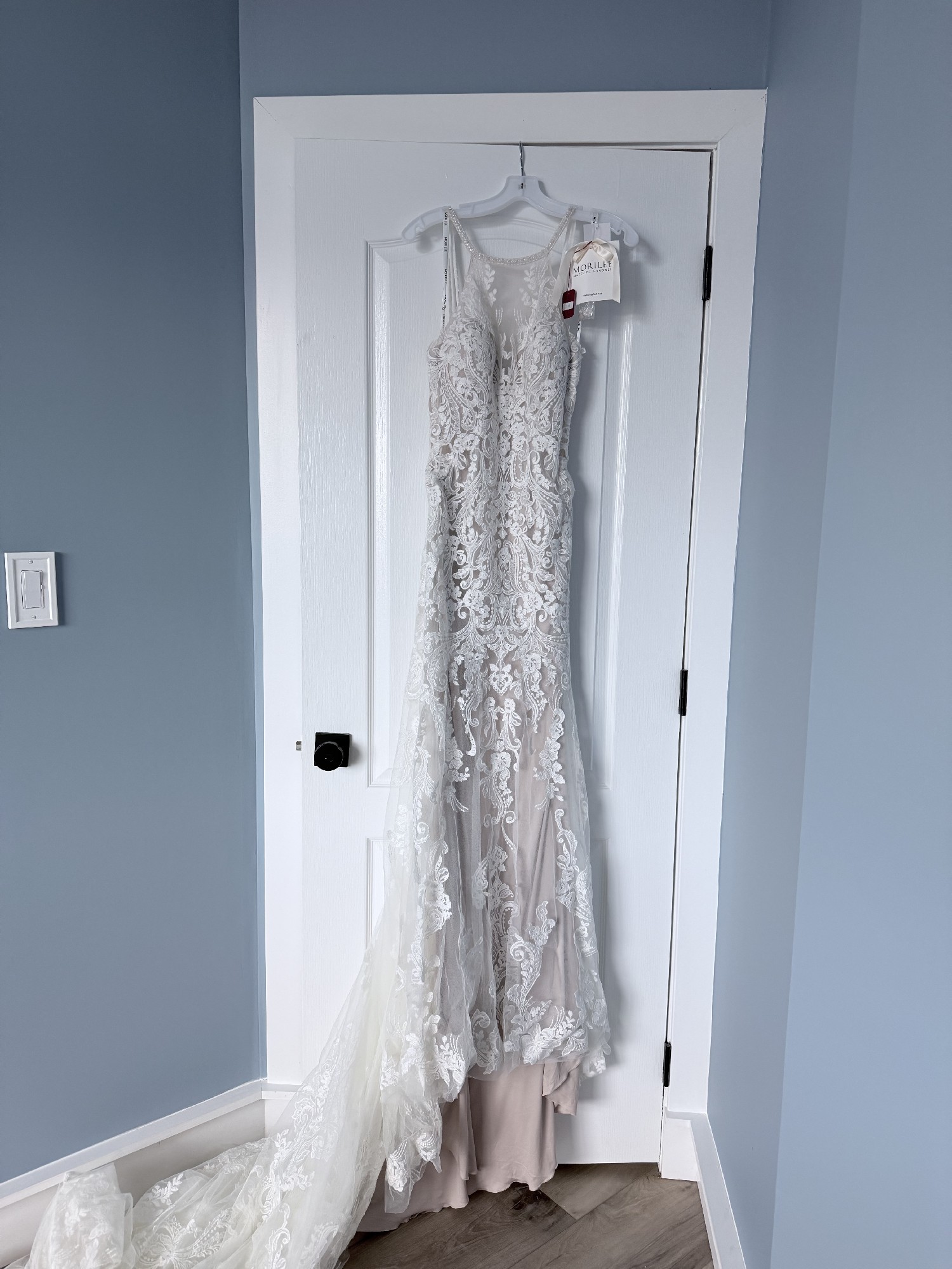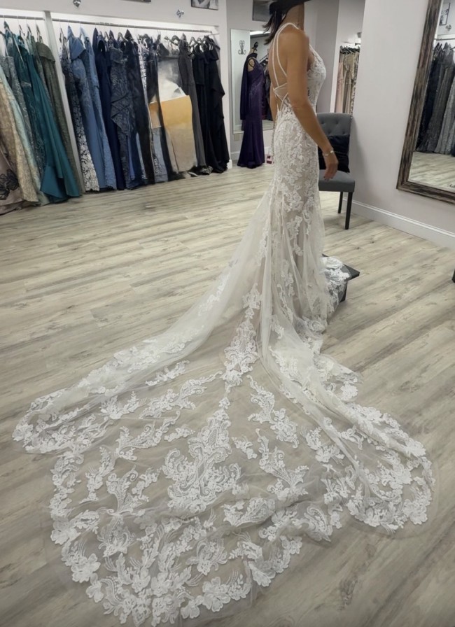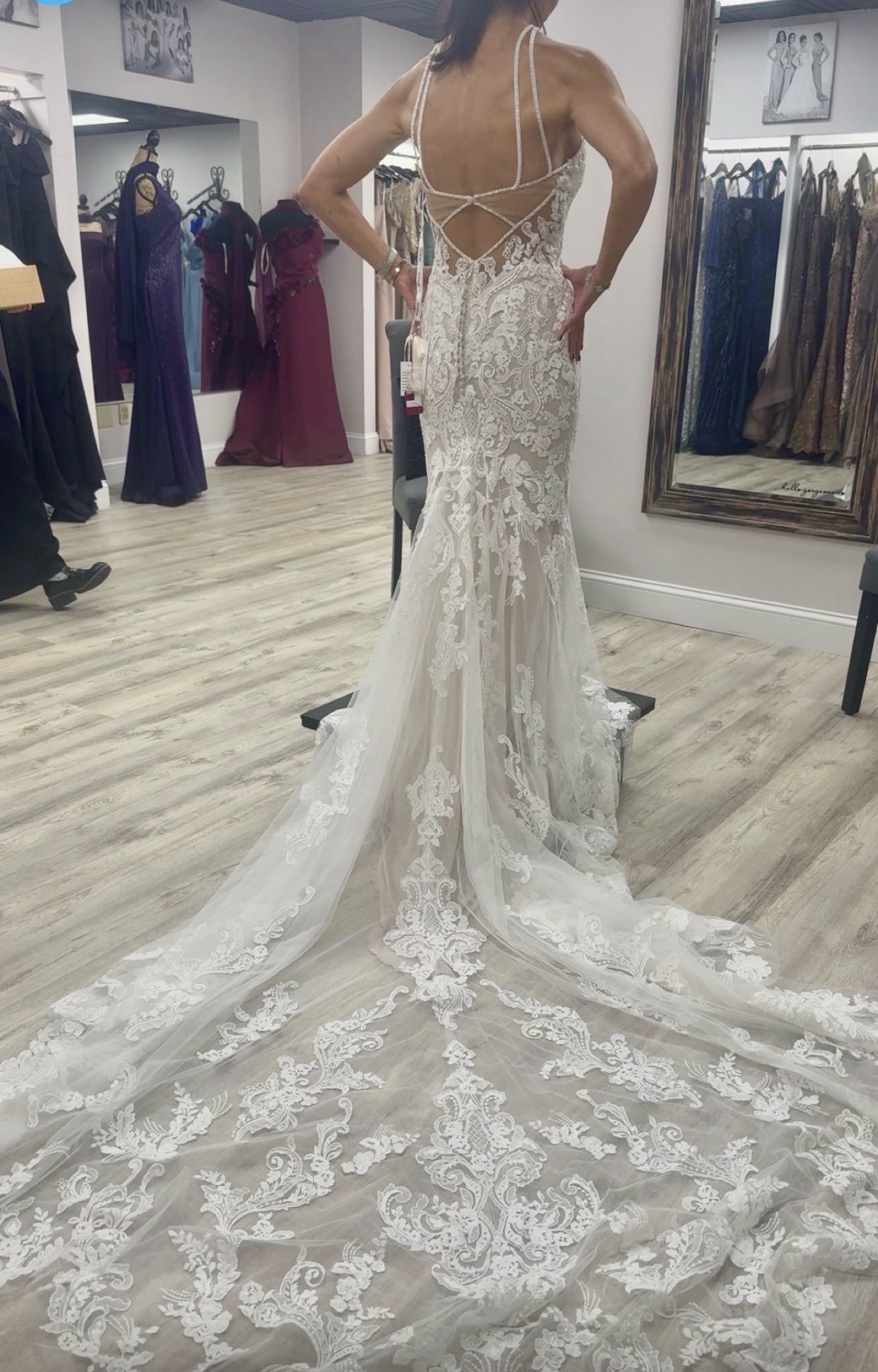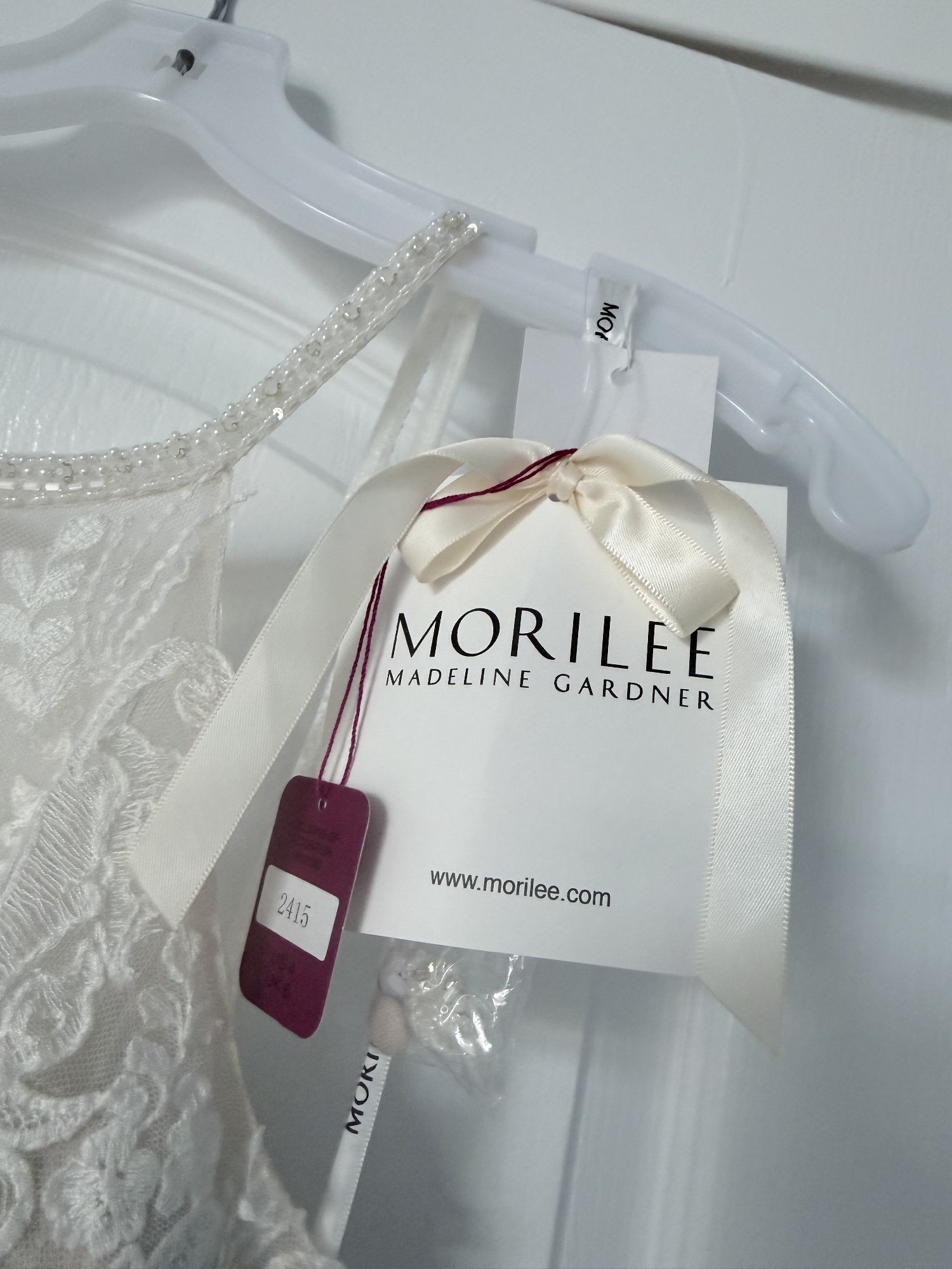 Brand New NEVER WORN- tags still attached. Mori Lee 2415 Danielle- Fit and Flare gown, Champagne / Ivory. Features a beaded halter neckline and a strappy illusion back with a keyhole. Stunning Stunning Stunning!!