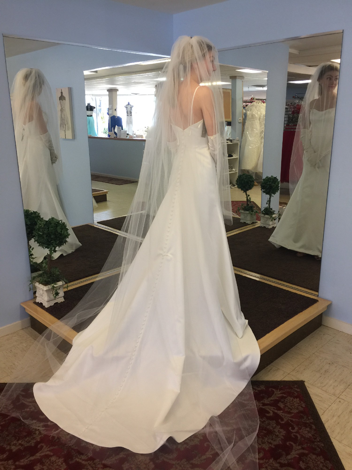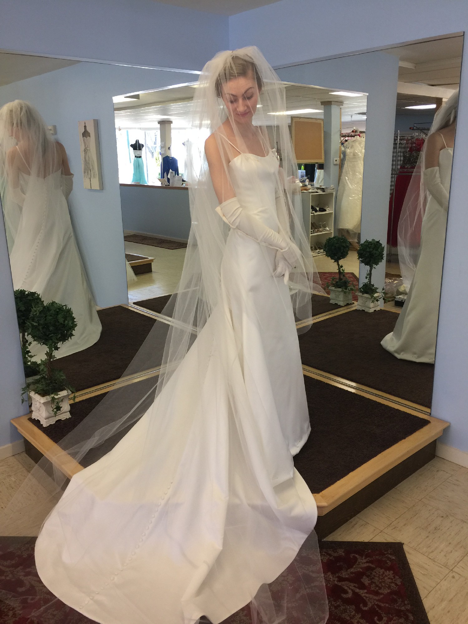 This dress is simple, elegant and timeless. Everything I wanted to be on my wedding day. This dress served me well, I hope it can make your day as fabulous as it made mine! The dress does need a good dry cleaning!