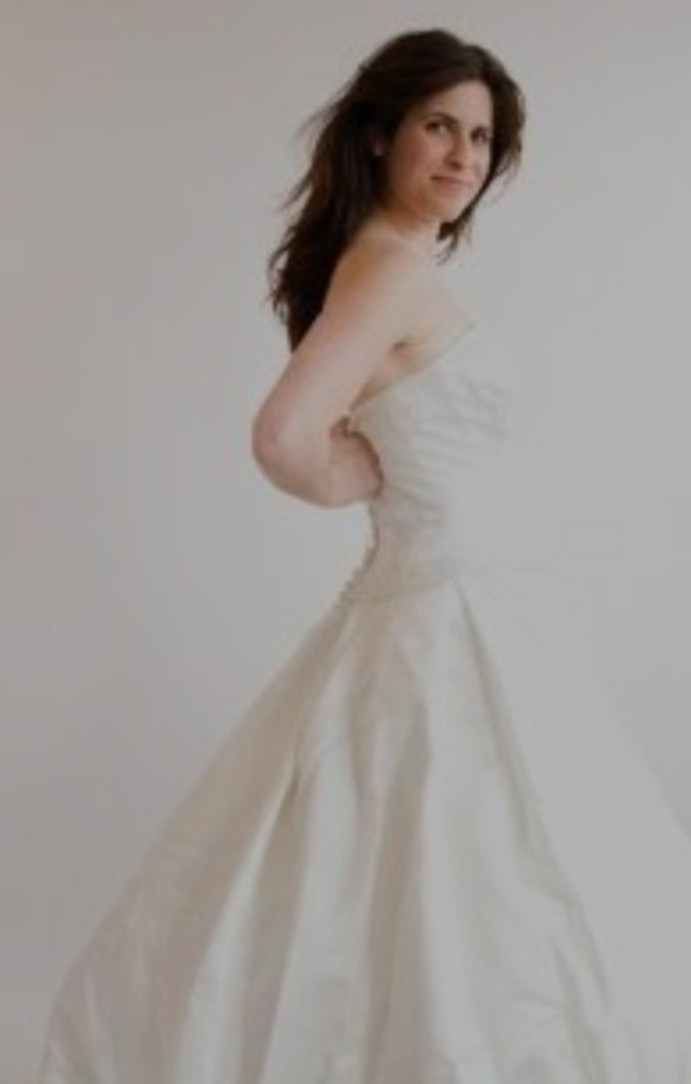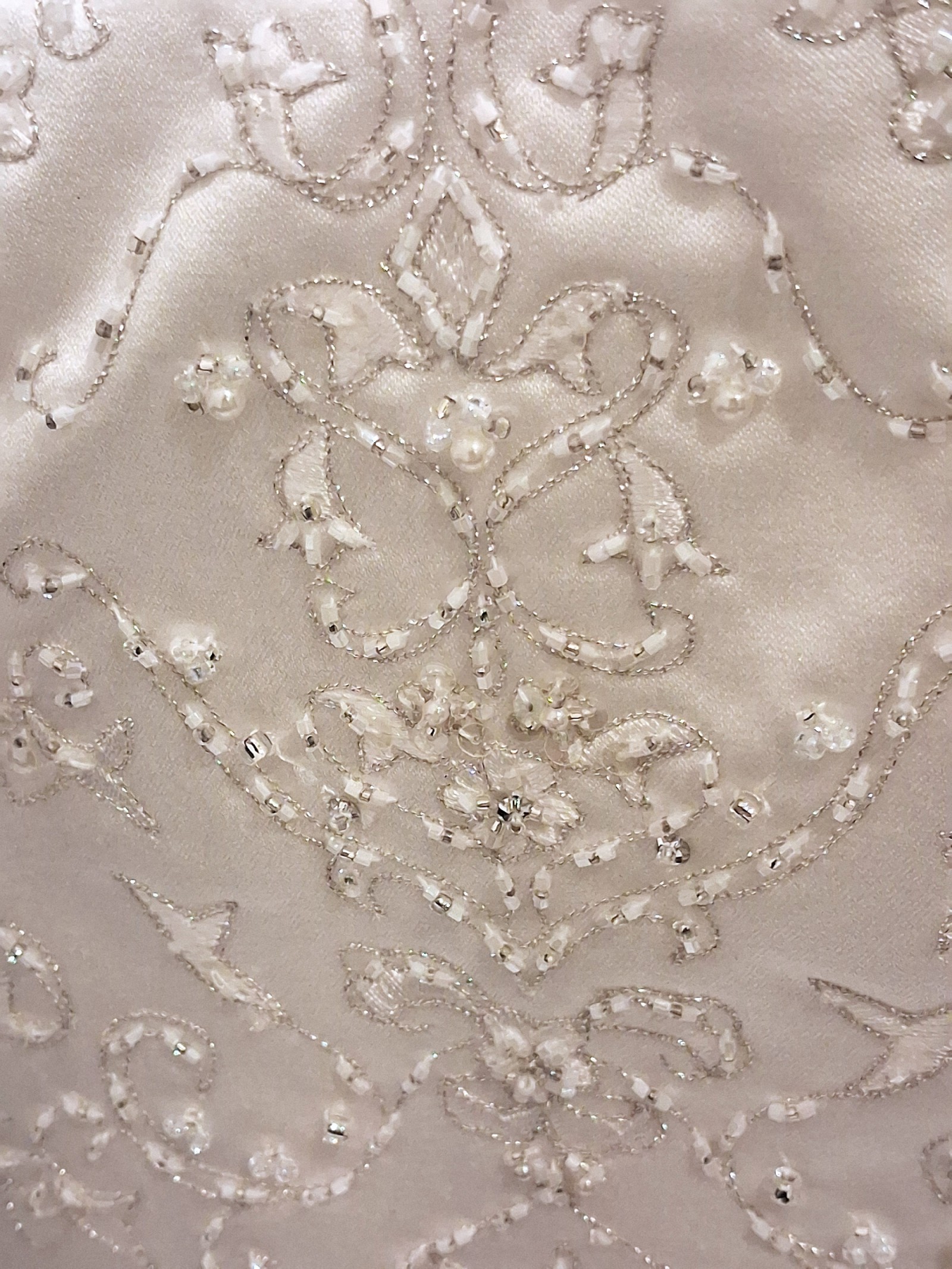 A modern vintage inspired ballgown with a beaded corset bodice to accentuate the waist and a full bottom to create an idyllic hourglass silhouette.