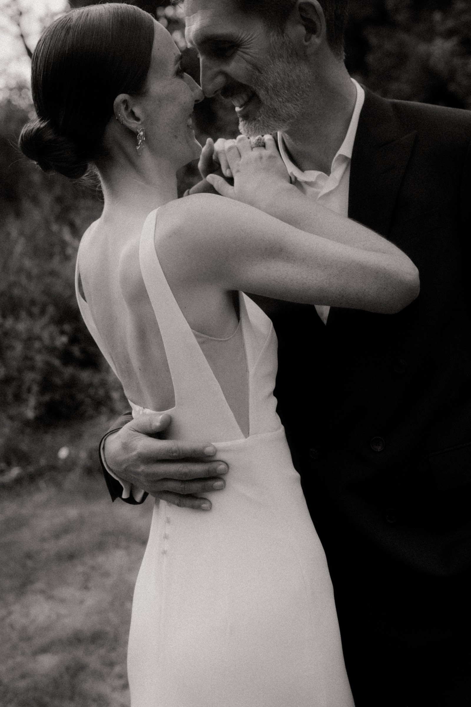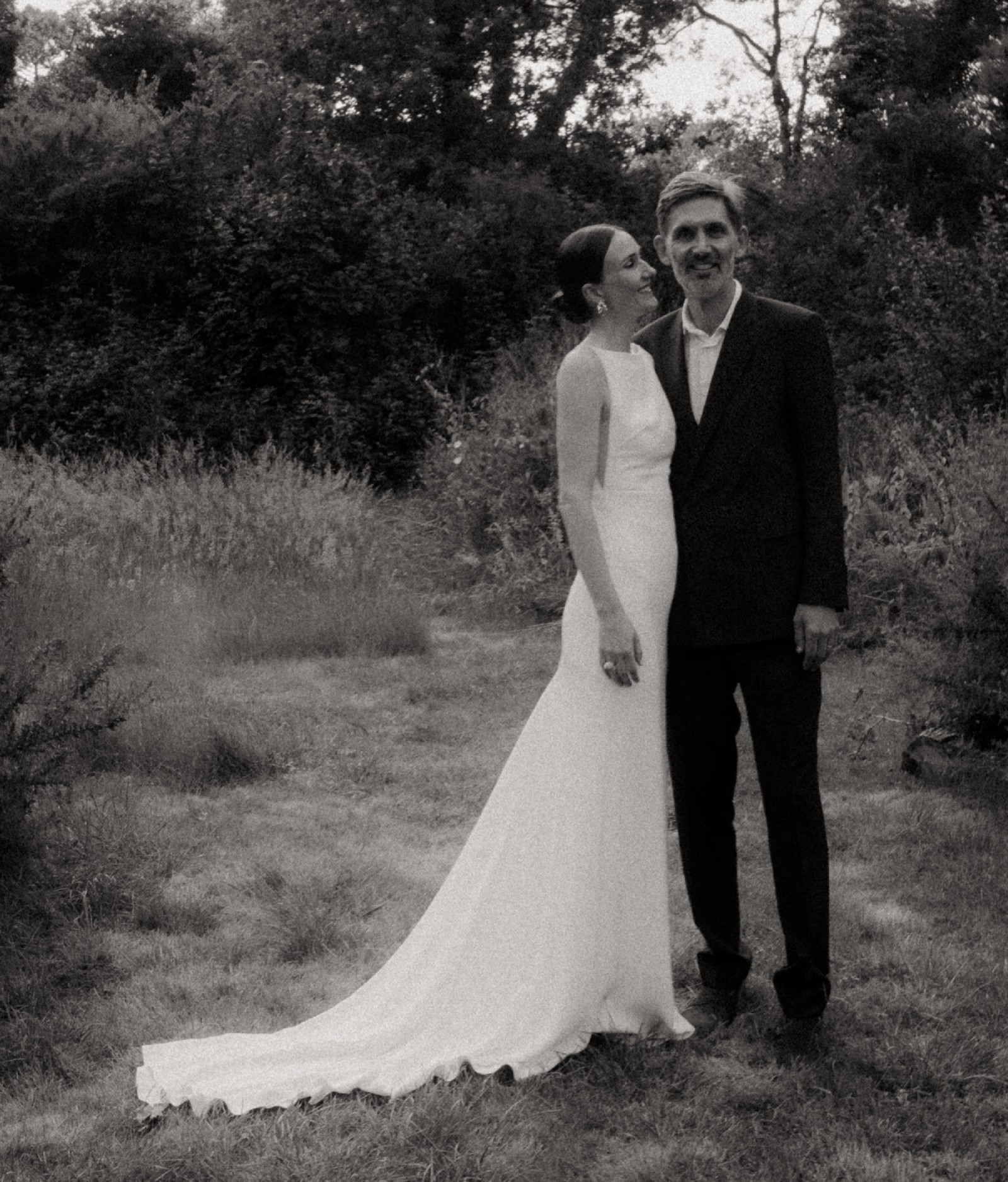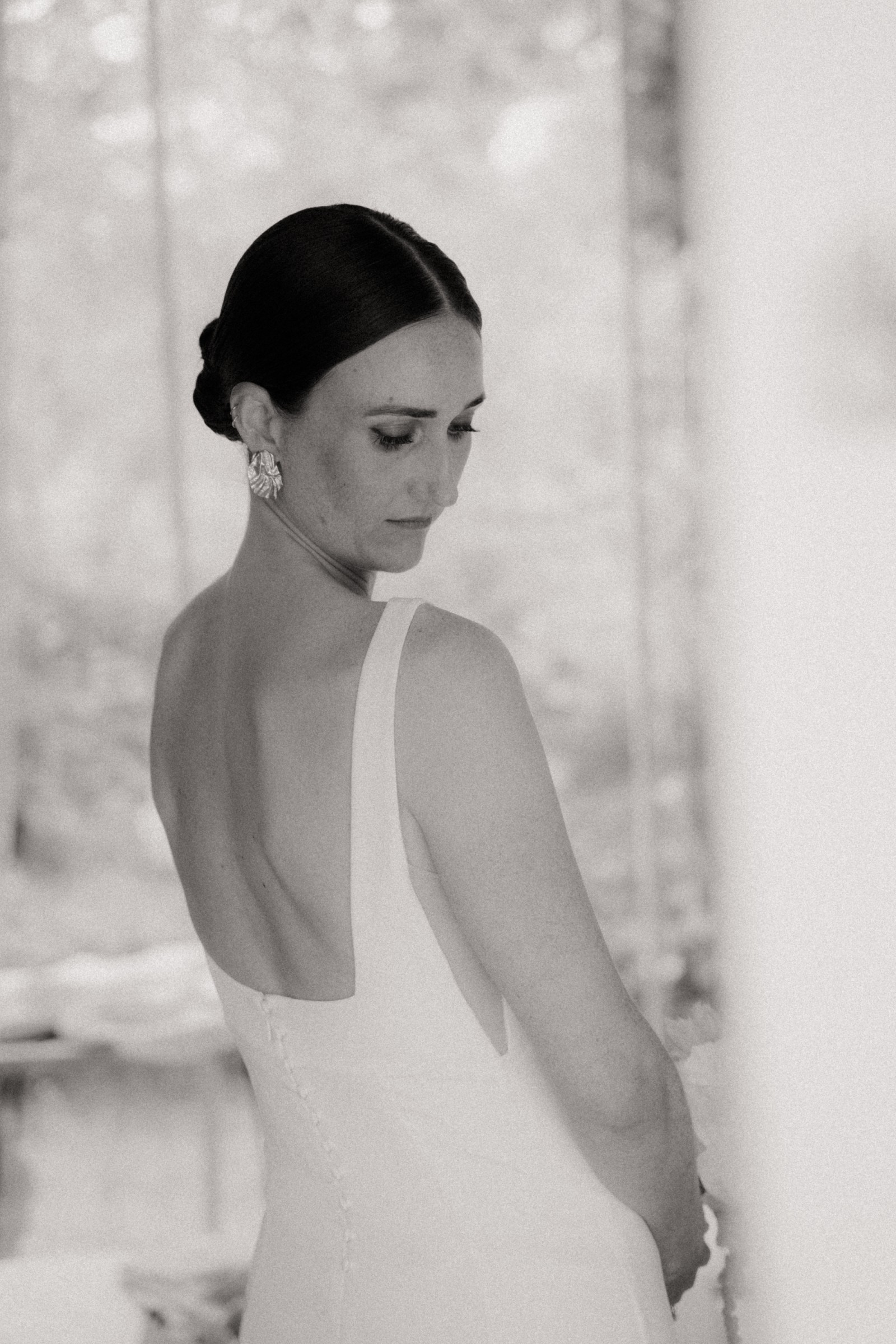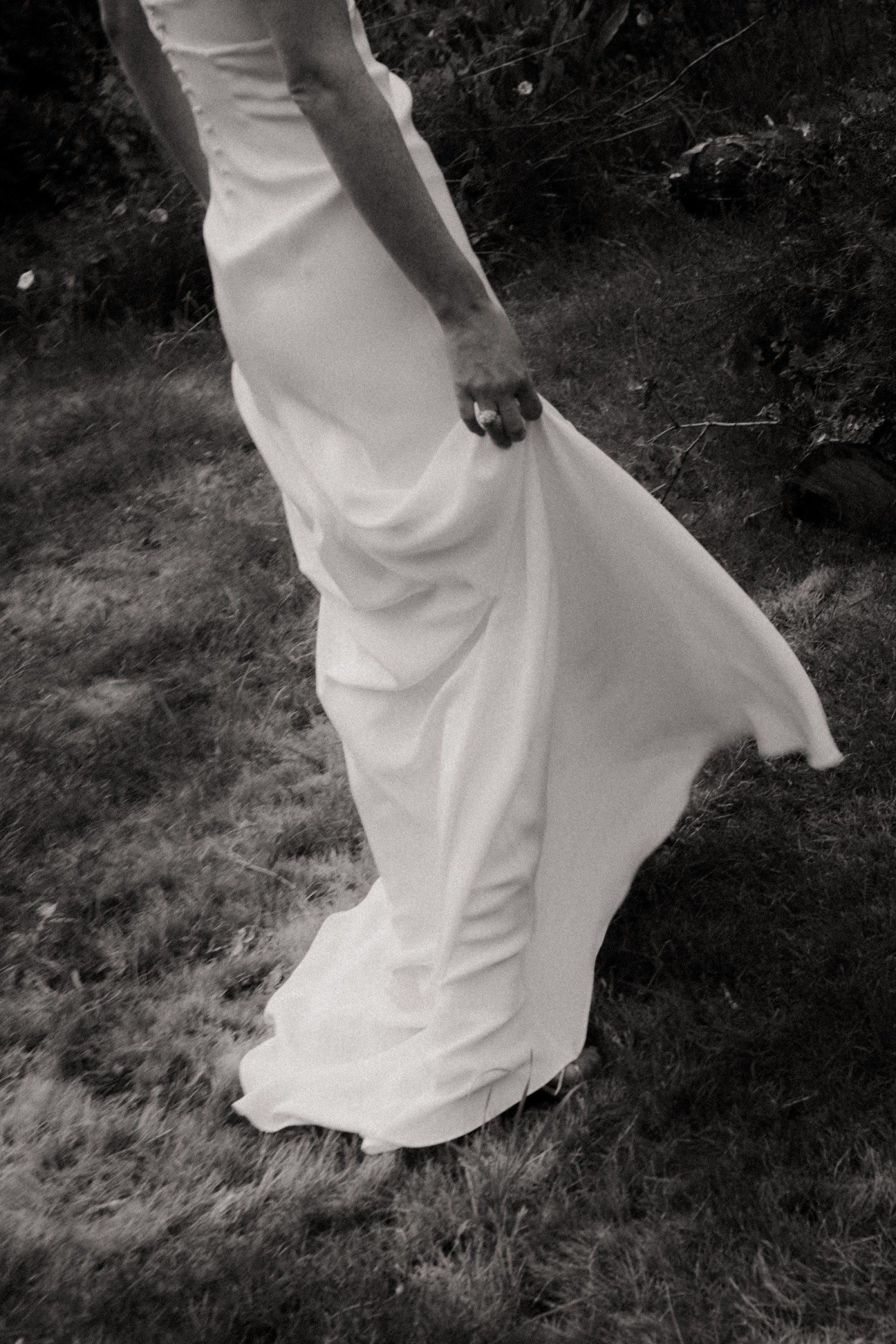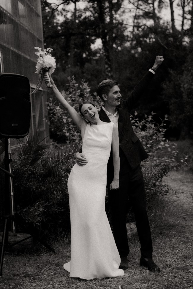 Elegant and minimalist Viola gown by Alexandra Grecco in luxurious silk crepe. Worn only for the ceremony in June 2025, outdoors.