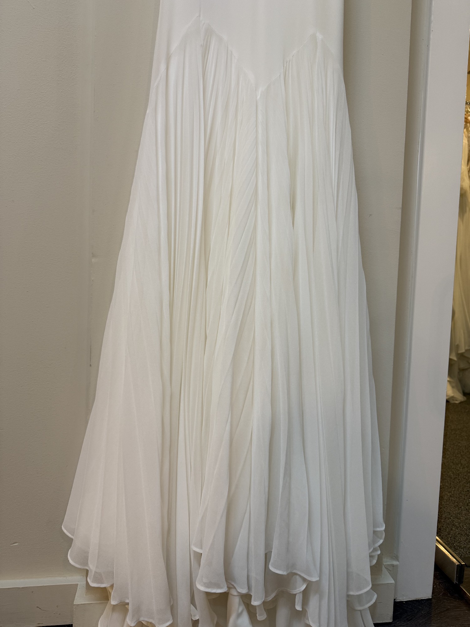 Our gowns are selected from our Bo Lee boutique located in Campbell, California. We are an authorized retailer for all designer gowns sold. The gowns are used only as samples for brides before placing a new order so some do have wear and most are in great condition. Ask us about the condition of the gown or for more pictures. All gowns are in its original measurements and length; no alterations or adjustments have been made. If you are in the area, come see the gown for yourself!
