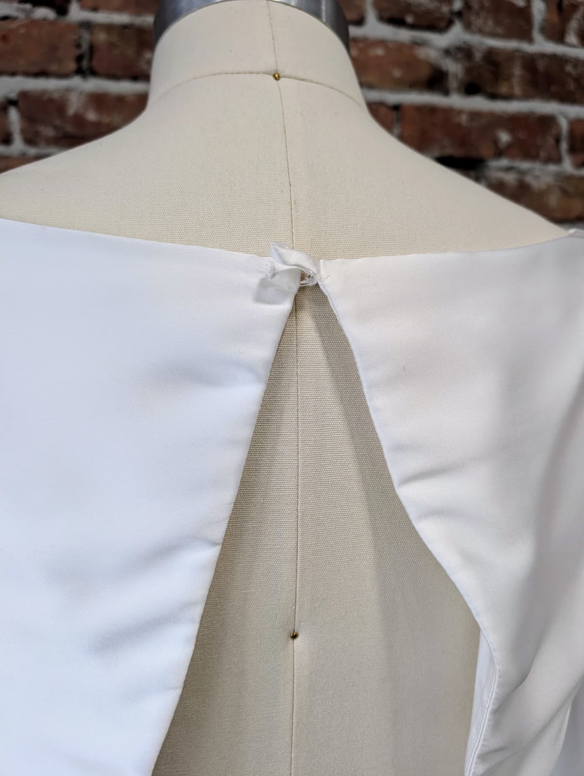 Note* Button at the top of the keyhole back is missing and there is a minor snag along the hemline. See photos.