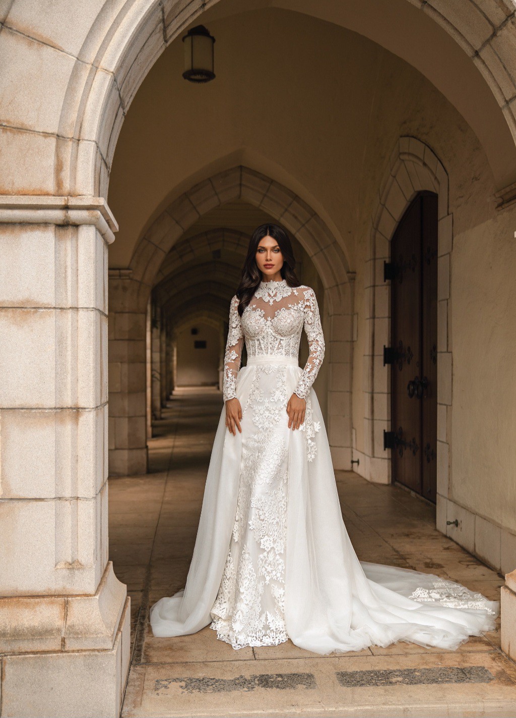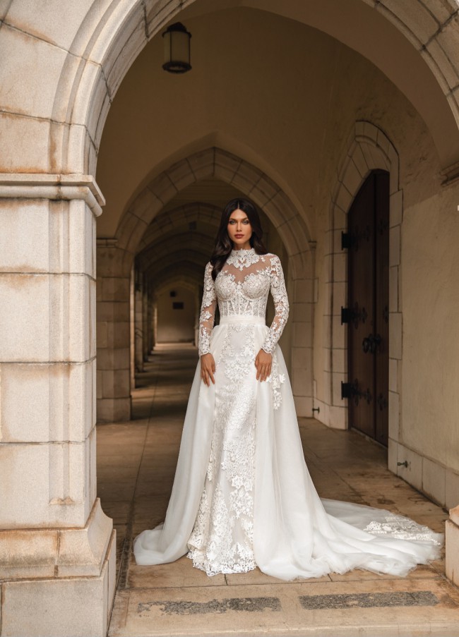 Dress was worn once, was tailored to fit size AU size 10, comes with the overskirt which can be taken off. Dress is sheer on top (I wore it with a nude bodysuit underneath, not included with the dress)
