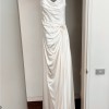 I fell in love with the classic, glamorous silhouette but knew I wanted a more modern neckline and dramatic waistline so I had the straps removed and added an additional Petersham for a more fitted waistline.