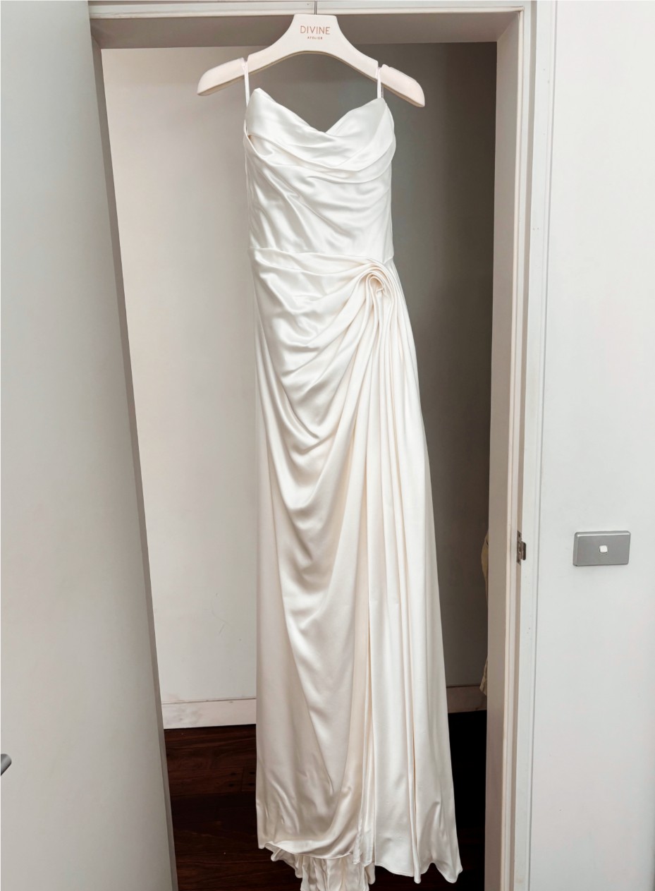 The Danielle comes from the Romanian family-owned label Divine Atelier and is crafted in 100% of the most heavenly silk I’ve ever seen in my life. It was such an honour to wear this beautiful dress and I would be so thrilled for her to make another bride’s wedding dress dreams come true.
