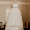 This Vera Wang White ballgown is a stunning embodiment of elegance and romance, and I'd love to share it with another bride. The dress features a breathtaking sweetheart neckline that beautifully highlights the décolletage and adds an enchanting allure. The strapless design offers a timeless silhouette, allowing you to embrace every moment of your special day.