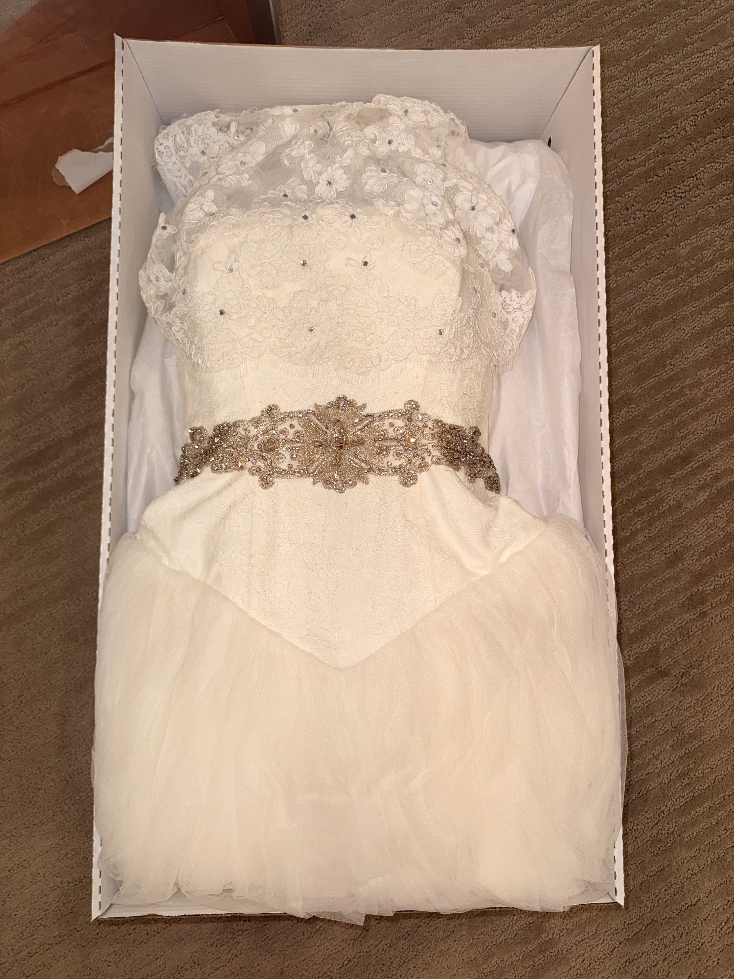 I added a belt but it can be removed for a more simple look. If you are interested, I will also include my cathedral length veil that really made the look timeless.
