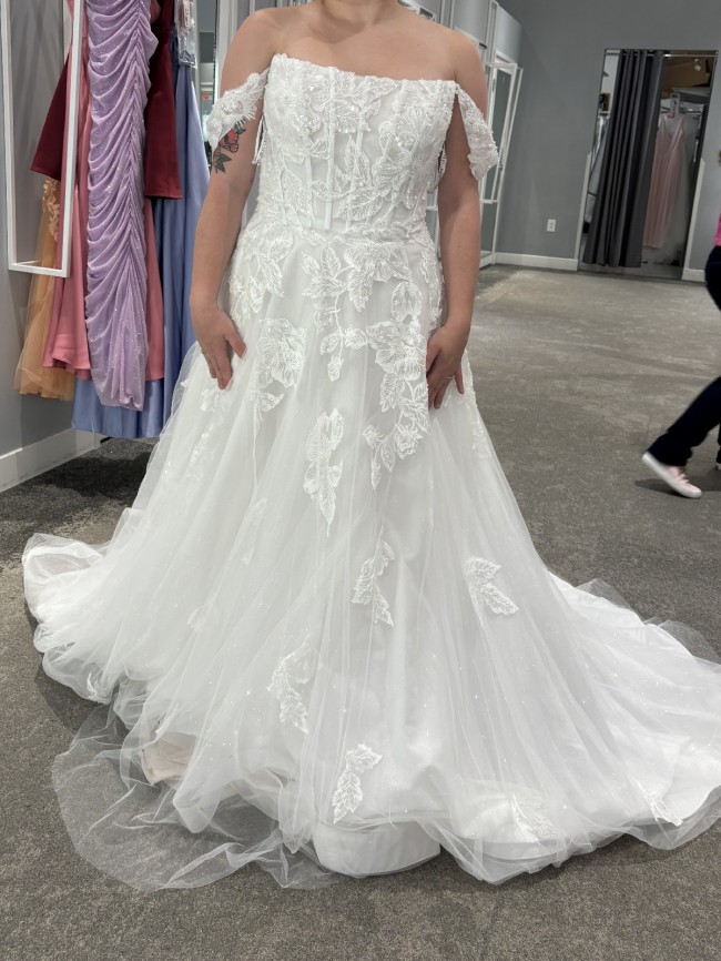 The detachable off-the-shoulder sleeves let you customize your look, transforming from a demure bridal gown to a chic evening dress in an instant, allowing for seamless transitions throughout your celebration. With this exquisite Oleg Cassini CWG1021, you’ll feel both stunning and comfortable, embodying the essence of timeless bridal elegance.