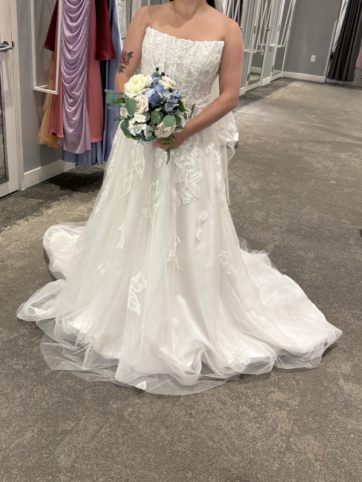 Crafted with meticulous attention to detail, this gown features exquisite beading and embroidery that shimmer beautifully with each movement. The enchanting sequins catch the light, ensuring you radiate sophistication as you walk down the aisle. One of the standout features of this dress is the thoughtfully designed pockets, offering both practicality and style for your special day.