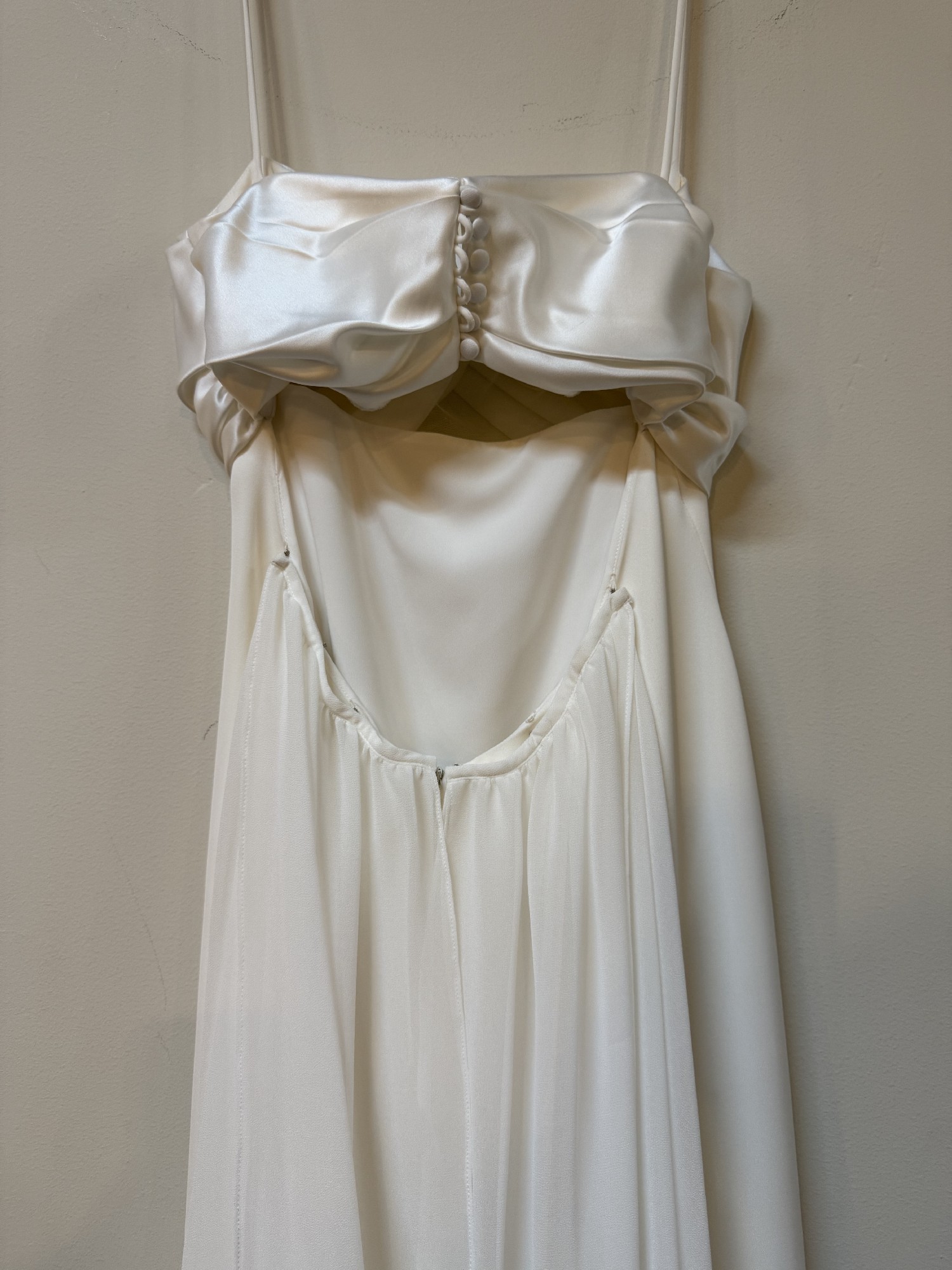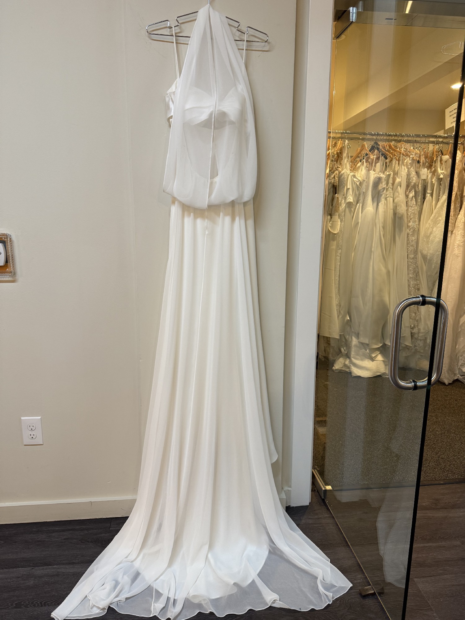 Our gowns are selected from our Bo Lee boutique located in Campbell, California. We are an authorized retailer for all designer gowns sold. The gowns are used only as samples for brides before placing a new order so some do have wear and most are in great condition. Ask us about the condition of the gown or for more pictures. All gowns are in its original measurements and length; no alterations or adjustments have been made. If you are in the area, come see the gown for yourself!