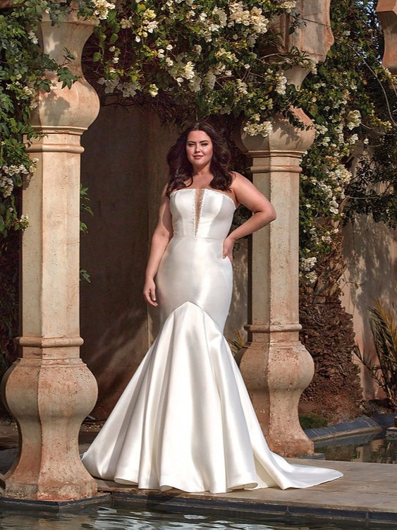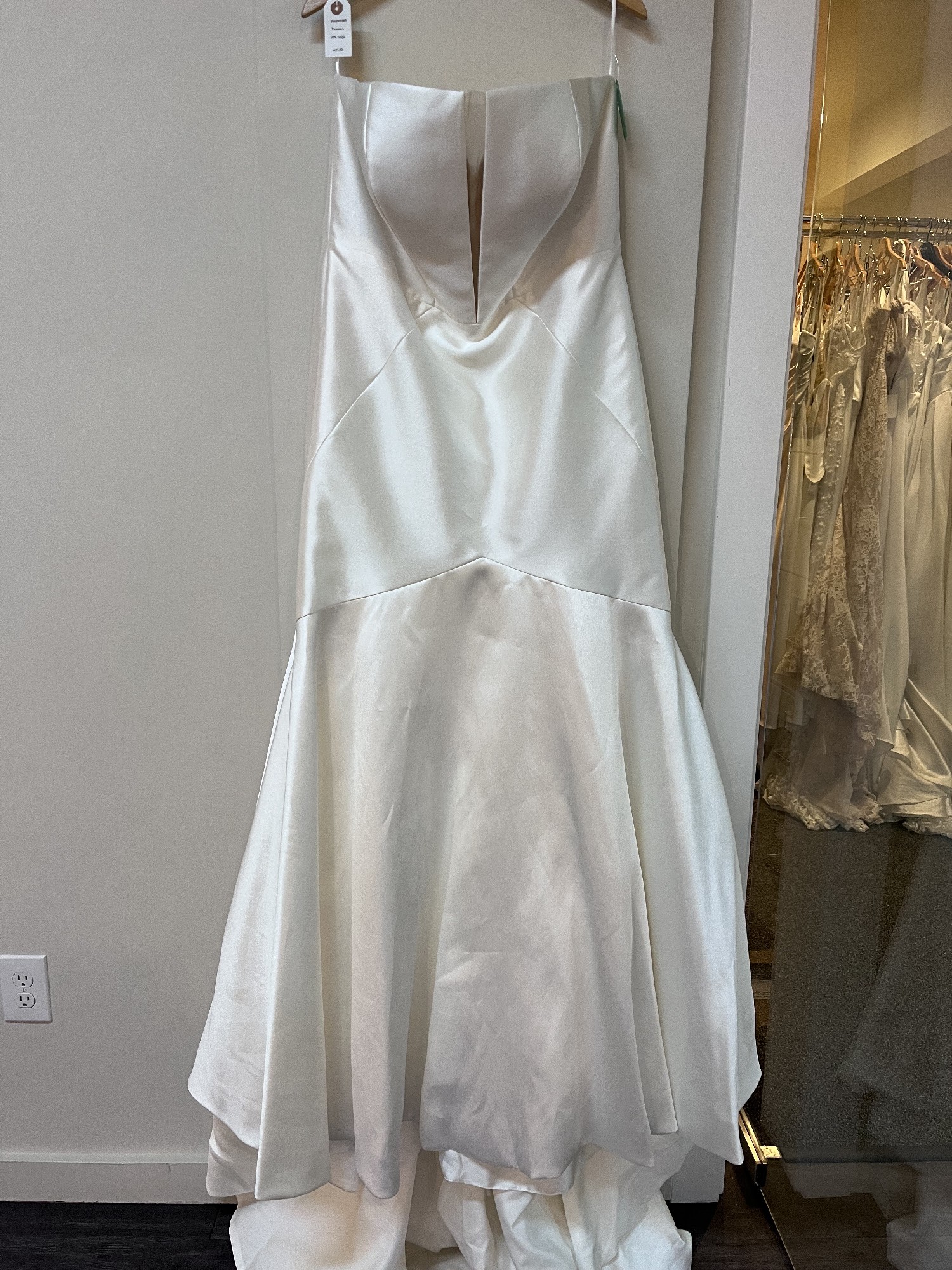 Our gowns are selected from our Bo Lee boutique located in Campbell, California. We are an authorized retailer for all designer gowns sold. The gowns are used only as samples for brides before placing a new order so some do have wear and most are in great condition. Ask us about the condition of the gown or for more pictures. All gowns are in its original measurements and length; no alterations or adjustments have been made. If you are in the area, come see the gown for yourself!